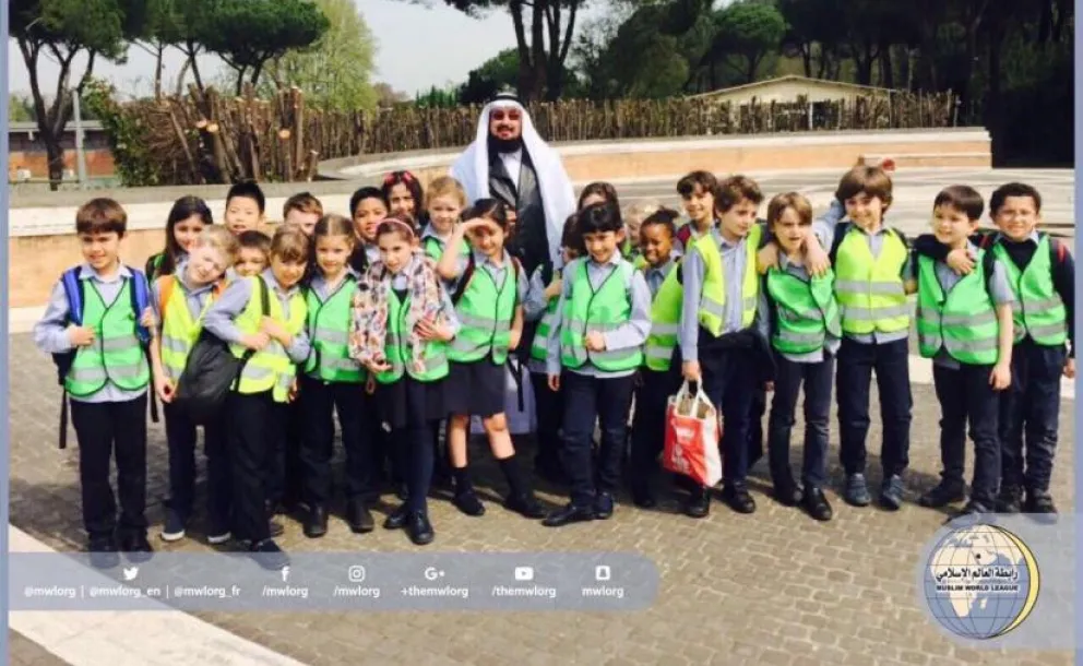 معالي أمين عام رابطة العالم الإسلامي الشيخ د. محمد العيسى، في تصريح لبعض الفضائيات الإيطالية، وبجواره رئيس…
