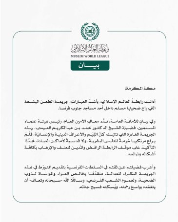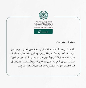 دانت رابطة العالم الإسلامي بأشد العبارات، إطلاق الميليشيات الحوثية الإرهابية المدعومة إيرانيًّا، طائرة بدون طيار تحمل مواد متفجرّة، باتجاه مدينة (خميس مشيط) بالمملكة العربية السعودية، في عمل إجراميٍّ جبان يتعمد استهداف المدنيين والأعيان المدنية.