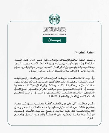 وفي بيانٍ للأمانة العامة للرابطة، ندَّد معالي أمينها العام، رئيس هيئة علماء المسلمين، فضيلة الشيخ الدكتور محمد بن عبدالكريم العيسى، باسم الرابطة ومجامعها وهيئاتها ومجالسها العالمية، بهذه الجرائم الهمَجية المروّعة والمتواصلة ضد المدنيين والمنشآت المدنية، والتي تمثِّل انتهاكًا صارخًا لكلِّ القوانين والأعراف الدولية والإنسانية.