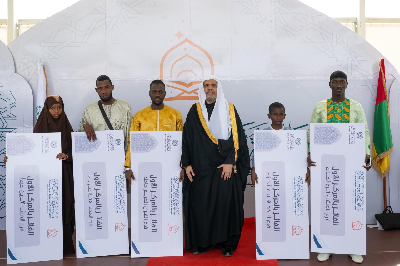 برعاية فخامةِ رئيس جمهورية غينيا بيساو، السيد عمر سيسوكو إمبالو، دشّن معالي الأمين العام، رئيس هيئة علماء المسلمين، فضيلة الشيخ الدكتور محمد بن عبدالكريم العيسى مسابقة "تيجان النور القرآنية"، في ملعب لينو كوريا في العاصمة "بيساو".