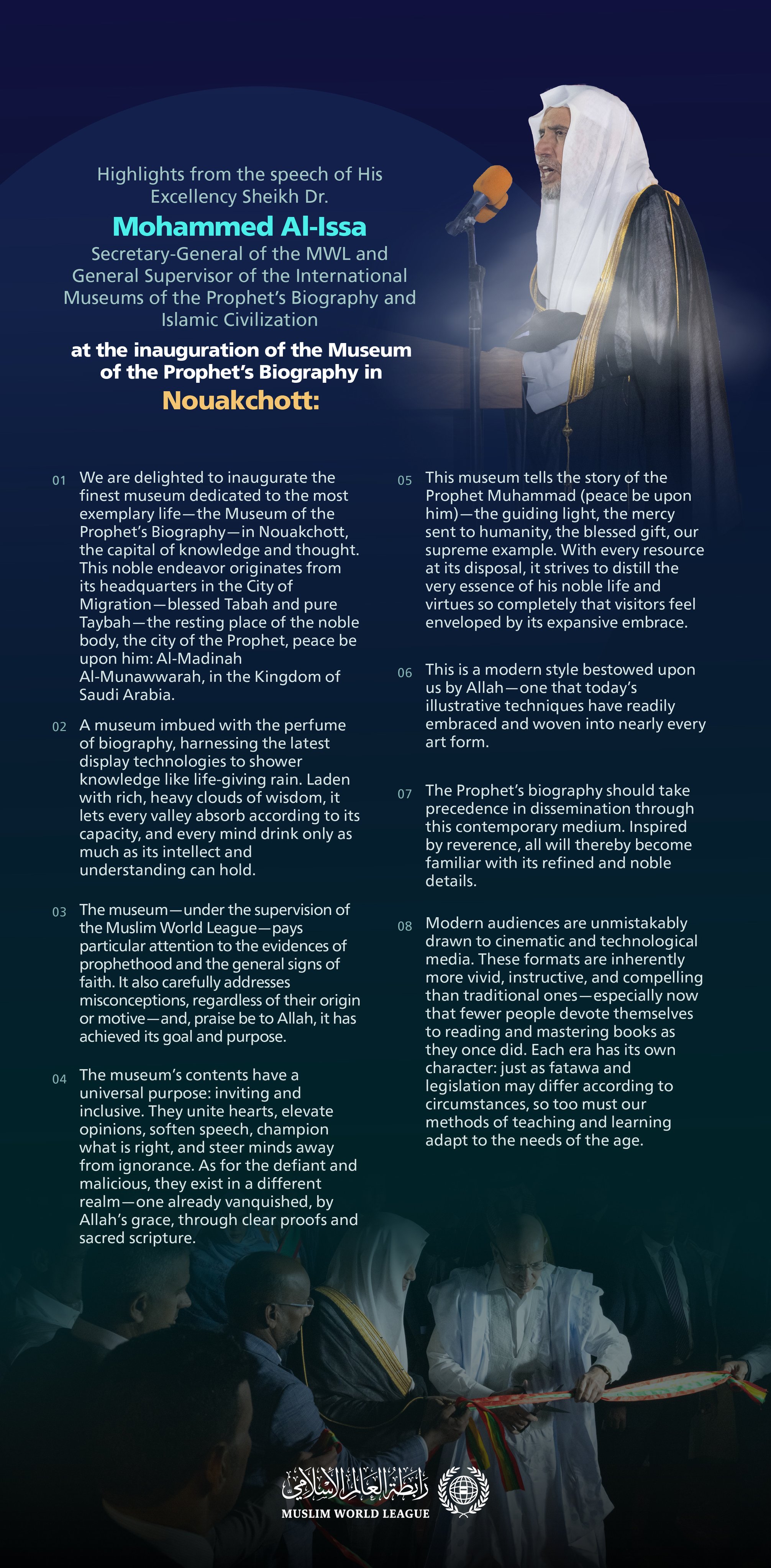 the Secretary-General of the MWL and General Supervisor of the Museums of the Prophet's Biography, at the inauguration of the International Museum of the Prophet's Biography in Nouakchott, the capital of Mauritania.