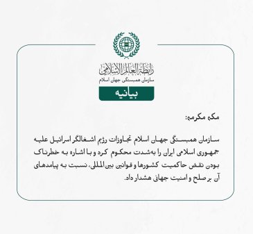 در بیانیهای که از سوی دبیرخانه کل این سازمان صادر شد، جناب دبیرکل محترم، رئیس انجمن علمای مسلمان، آقای دکتر شیخ محمد بن عبدالكریم العیسی، بر اهمیت این اقدام در شرایط کنونی جهانی تأکید کرد؛ شرایطی که در آن جهان شاهد افزایش نگرانکننده گفتارها، شعارها و روشهای نفرتپراکنی ؛ بهویژه نسبت به اسلام و اقلیتهای مسلمان است. او بهطور خاص به نکتهای که نماینده سازمان ملل اعلام کرده بود، یعنی تمرکز این برنامه بر ""آموزش"" در راستای رفع سوءتفاهمها درباره اسلام در جهان غرب، اشاره کرد.
