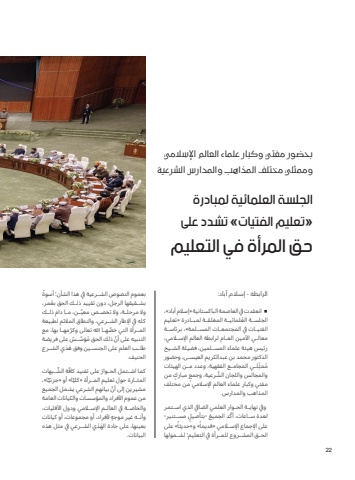 22%u0627%u0644%u0631%u0627%u0628%u0637%u0629 - %u0625%u0633%u0627%u0644%u0645 %u0622%u0628%u0627%u062f:%u25aa %u0627%u0646%u0639%u0642%u062f%u062a %u064a%u0641 %u0627%u0644%u0639%u0627%u0635%u0645%u0629 %u0627%u0644%u0628%u0627%u0643%u0633%u062a%u0627%u0646%u064a%u0629 %u00bb%u0625%u0633%u0627%u0644%u0645 %u0622%u0628%u0627%u062f%u00ab%u060c %u0627%u0644%u062c%u0644%u0633%u0640%u0640%u0629 %u0627%u0644%u0639%u064f%u0644%u0645%u0627%u0626%u064a%u0640%u0640%u0629 %u0627%u0644%u0645%u063a%u0644%u0642%u0640%u0640%u0629 %u0644%u0645%u0628%u0640%u0640%u0627%u062f%u0631%u0629 %u00bb%u062a%u0639%u0644%u064a%u0645 %u0627%u0644%u0641%u062a%u064a%u0640%u0640%u0627%u062a %u064a%u0641 %u0627%u0644%u0645%u062c%u062a%u0645%u0639%u0640%u0640%u0627%u062a %u0627%u0644%u0645%u0633%u0640%u0640%u0644%u0645%u0629%u00ab%u060c %u0628%u0631%u0626%u0627%u0633%u0640%u0640%u0629 %u0645%u0639%u0627%u0644%u0640%u0640%u064a %u0627%u0623%u0644%u0645%u064a%u0646 %u0627%u0644%u0639%u0640%u0640%u0627%u0645 %u0644%u0631%u0627%u0628%u0637%u0629 %u0627%u0644%u0639%u0627%u0644%u0645 %u0627%u0625%u0644%u0633%u0640%u0640%u0627%u0645%u064a%u060c %u0631%u0626%u064a%u0633 %u0647%u064a%u0626%u0629 %u0639%u0644%u0645%u0627%u0621 %u0627%u0644%u0645%u0633%u0640%u0640%u0644%u0645%u064a%u0646%u060c %u0641%u0636%u064a%u0644%u0629 %u0627%u0644%u0634%u0640%u0640%u064a%u062e %u0627%u0644%u062f%u0643%u062a%u0648%u0631 %u0645%u062d%u0645%u062f %u0628%u0646 %u0639%u0628%u062f%u0627%u0644%u0643%u0631%u064a%u0645 %u0627%u0644%u0639%u064a%u0633%u0640%u0640%u0649%u060c %u0648%u062d%u0636%u0648%u0631 %u0650%u0644%u0640%u0640%u064a %u0627%u0644%u0645%u062c%u0627%u0645%u0640%u0640%u0639 %u0627%u0644%u0641%u0642%u0647%u064a%u0629%u060c %u0648%u0639%u062f%u062f %u0645%u0640%u0640%u0646 %u0627%u0644%u0647%u064a%u0626%u0627%u062a %u0651%u0645%u064f%u0645%u062b%u064d %u064d %u0645%u0628%u0627%u0631%u0643 %u0645%u0646 %u0651%u064e %u0648%u0627%u0644%u0645%u062c%u0627%u0644%u0633 %u0648%u0627%u0644%u0644%u062c%u0627%u0646 %u0627%u0644%u0634%u0631%u0639%u064a%u0629%u060c %u0648%u062c%u0645%u0639%u0645%u0641%u062a%u064a %u0648%u0643%u0628%u0627%u0631 %u0639%u0644%u0645%u0627%u0621 %u0627%u0644%u0639%u0627%u0644%u0645 %u0627%u0625%u0644%u0633%u0627%u0644%u0645%u064a %u0645%u0646 %u0645%u062e%u062a%u0644%u0641 %u0627%u0644%u0645%u0630%u0627%u0647%u0628 %u0648%u0627%u0644%u0645%u062f%u0627%u0631%u0633. %u0648%u064a%u0641 %u0646%u0647%u0627%u064a%u0640%u0640%u0629 %u0627%u0644%u062d%u0640%u0640%u0648%u0627%u0631 %u0627%u0644%u0639%u0644%u0645%u064a %u0627%u0644%u0636%u0627%u064a%u0641 %u0627%u0644%u0630%u064a %u0627%u0633%u0640%u0640%u062a%u0645%u0631 -%u0628%u062a%u0623%u0635%u064a%u0644 %u0645%u0633%u0640%u0640%u062a%u0646%u064a%u0631- %u0651%u064e%u062f %u0627%u0644%u062c%u0645%u064a%u0639%u064f %u064d%u0644%u0639%u062f%u0629 %u0633%u0640%u0640%u0627%u0639%u0627%u062a%u060c %u0623%u0643%u064b%u00ab %u0639%u0644%u0649 %u064b%u00ab %u0648%u00bb%u062d%u062f%u064a%u062b%u0627%u0639%u0644%u0649 %u0627%u0625%u0644%u062c%u0645%u0627%u0639 %u0627%u0625%u0644%u0633%u0640%u0640%u0627%u0645%u064a %u00bb%u0642%u062f%u064a%u0645%u0627%u0627%u0644%u062d%u0640%u0640%u0642 %u0627%u0644%u0645%u0634%u0640%u0640%u0631%u0648%u0639 %u0644%u0644%u0645%u0640%u0640%u0631%u0623%u0629 %u064a%u0641 %u0627%u0644%u062a%u0639%u0644%u064a%u0645%u061b %u0644%u0634%u0640%u0640%u0645%u0648%u0644%u0647%u0627 %u064b%u0628%u0639%u0645%u0648%u0645 %u0627%u0644%u0646%u0635%u0648%u0635 %u0627%u0644%u0634%u0640%u0640%u0631%u0639%u064a%u0629 %u064a%u0641 %u0647%u0630%u0627 %u0627%u0644%u0634%u0623%u0646%u061b %u0623%u0633%u0648%u0629%u0628%u0634%u0640%u0640%u0642%u064a%u0642%u0647%u0627 %u0627%u0644%u0631%u062c%u0644%u060c %u062f%u0648%u0646 %u062a%u0642%u064a%u064a%u062f %u0630%u0644%u0640%u0640%u0643 %u0627%u0644%u062d%u0642 %u0628%u0639%u064f%u0645%u0631%u060c%u0648%u0627%u0644 %u0645%u0631%u062d%u0644%u0640%u0640%u0629%u060c %u0648%u0627%u0644 %u062a%u062e%u0635%u0640%u0640%u0635 %u0645%u0639%u064a%u0651%u064e%u0640%u0640%u0646%u060c %u0645%u0640%u0640%u0627 %u062f%u0627%u0645 %u0630%u0644%u0640%u0640%u0643 %u0643%u0644%u0647 %u064a%u0641 %u0627%u0625%u0644%u0637%u0627%u0631 %u0627%u0644%u0634%u0640%u0640%u0631%u0639%u064a%u060c %u0648%u0627%u0644%u0646%u0637%u0627%u0642 %u0627%u0644%u0645%u0627%u0644%u0626%u0645 %u0644%u0637%u0628%u064a%u0639%u0629 %u0651%u064e%u0645%u0647%u0640%u0640%u0627 %u0628%u0647%u0627%u060c %u0645%u0639 %u0651%u064e %u0627%u0644%u0645%u0640%u0640%u0631%u0623%u0629 %u0627%u0644%u062a%u064a %u062e%u0635%u0647%u0640%u0640%u0627 %u0647%u0644%u0644%u0627 %u062a%u0639%u0627%u0644%u0649 %u0648%u0643%u0631%u0627%u0644%u062a%u0646%u0628%u064a%u0647 %u0639%u0644%u0649 %u0623%u0646%u0651%u064e %u0630%u0644%u0643 %u0627%u0644%u062d%u0642 %u0645%u064f %u0651%u064e %u0624%u0633 %u064c %u0640%u0640%u0633 %u0639%u0644%u0649 %u0641%u0631%u064a%u0636%u0629 %u064e%u062f%u0652%u064a %u0627%u0644%u0634%u0640%u0640%u0631%u0639 %u0637%u0644%u0640%u0640%u0628 %u0627%u0644%u0639%u0644%u0645 %u0639%u0644%u0649 %u0627%u0644%u062c%u0646%u0633%u0640%u0640%u064a%u0646 %u0648%u0641%u0642 %u0647%u0627%u0644%u062d%u0646%u064a%u0641.%u0651%u064e %u0651%u064f %u0629 %u0627%u0644%u0634%u0640%u0640%u0628%u0647%u0627%u062a %u0643%u0645%u0627 %u0627%u0634%u0640%u0640%u062a%u0645%u0644 %u0627%u0644%u062d%u0640%u0640%u0648%u0627%u0631%u064f %u0639%u0644%u0649 %u062a%u0641%u0646%u064a%u062f %u0643%u0627%u0641%u0627%u0644%u0645%u062b%u0640%u0640%u0627%u0631%u0629 %u062d%u0648%u0644 %u062a%u0639%u0644%u064a%u0645 %u0627%u0644%u0645%u0640%u0640%u0631%u0623%u0629 %u00bb%u0643%u0644%u064a%u0651%u064b%u0627%u00ab %u0623%u0648 %u00bb%u062c%u0632%u0626%u064a%u0651%u064b%u0627%u00ab%u060c %u0645%u0634%u064a%u0631%u064a%u0646 %u0625%u0644%u0649 %u0623%u0646%u0651%u064e %u0628%u064a%u0627%u0646%u0647%u0645 %u0627%u0644%u0634%u0631%u0639%u064a %u064a%u0634%u0645%u0644 %u0627%u0644%u062c%u0645%u064a%u0639 %u0645%u0646 %u0639%u0645%u0648%u0645 %u0627%u0623%u0644%u0641%u0631%u0627%u062f %u0648%u0627%u0644%u0645%u0624%u0633%u063