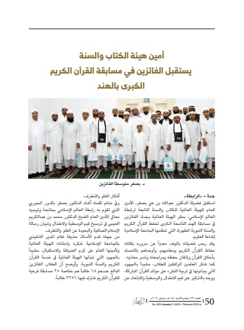 %u0627%u0644%u0639%u062f%u062f: %u0666%u0662%u0669 %u062c%u0645%u0627%u062f%u0649 %u0627%u0622%u0644%u062e%u0631%u0629 %u0661%u0664%u0664%u0660 %u0647%u0640 %u0640 %u0641%u0628%u0631%u0627%u064a%u0631 %u0662%u0660%u0661%u0669%u0645 50No. 629 Jumada II 1440 H- February 2019 m%u062c%u062f%u0629 %u2013 %u00bb%u0627%u0644%u0631%u0627%u0628%u0637%u0629%u00ab%u0627%u0633%u062a%u0642%u0628%u0644 %u0641%u0636%u064a%u0644%u0629 %u0627%u0644%u062f%u0643%u062a%u0648%u0631 %u0639%u0628%u062f%u0627%u0644%u0644%u0647 %u0628%u0646 %u0639%u064a%u0644 %u0628%u0635%u0641%u0631%u060c %u0627%u0623%u0644%u0645%u0646%u064a %u0627%u0644%u0639%u0627%u0645 %u0644%u0644%u0647%u064a%u0626%u0629 %u0627%u0644%u0639%u0627%u0645%u0644%u064a%u0629 %u0644%u0644%u0643%u062a%u0627%u0628 %u0648%u0627%u0644%u0633%u0646%u0629 %u0627%u0644%u062a%u0627%u0628%u0639%u0629 %u0644%u0631%u0627%u0628%u0637%u0629 %u0627%u0644%u0639%u0627%u0644%u0645 %u0627%u0625%u0644%u0633%u0627%u0644%u0645%u064a%u060c %u0628%u0645%u0642%u0631 %u0627%u0644%u0647%u064a%u0626%u0629 %u0627%u0644%u0639%u0627%u0645%u0644%u064a%u0629 %u0628%u062c%u062f%u0629%u060c %u0627%u0644%u0641%u0627%u0626%u0632%u064a%u0646 %u064a%u0641 %u0645%u0633%u0627%u0628%u0642%u0629 %u0627%u0644%u0647%u0646%u062f %u0627%u0644%u062a%u0627%u0633%u0639%u0629 %u0627%u0644%u0643%u0631%u0628%u0649 %u0644%u062d%u0641%u0638 %u0627%u0644%u0642%u0631%u0622%u0646 %u0627%u0644%u0643%u0631%u064a%u0645 %u0648%u0627%u0644%u0633%u0646%u0629 %u0627%u0644%u0646%u0628%u0648%u064a%u0629 %u0627%u0645%u0644%u0637%u0647%u0631%u0629%u060c %u0627%u0644%u062a%u064a %u062a%u0646%u0638%u0645%u0647%u0627 %u0627%u0644%u062c%u0627%u0645%u0639%u0629 %u0627%u0625%u0644%u0633%u0627%u0644%u0645%u064a%u0629 %u0625%u0634%u0627%u0639%u0629 %u0627%u0644%u0639%u0644%u0648%u0645.%u064b %u0639%u0646 %u0631%u0633%u0648%u0631%u0647 %u0628%u0644%u0642%u0627%u0626%u0647 %u0648%u0642%u062f %u0631%u062d%u0628 %u0641%u0636%u064a%u0644%u062a%u0647 %u0628%u0627%u0644%u0648%u0641%u062f%u060c %u0645%u0639%u0631%u0628%u0627%u062d%u0641%u0627%u0638 %u0627%u0644%u0642%u0631%u0622%u0646 %u0627%u0644%u0643%u0631%u064a%u0645 %u0648%u0645%u0639%u0644%u0645%u064a%u0647%u0645. %u0648%u0623%u0648%u0635%u0627%u0647%u0645 %u0628%u0627%u0644%u062a%u0645%u0633%u0643 %u0628%u0623%u062e%u0627%u0644%u0642 %u0627%u0644%u0642%u0631%u0622%u0646 %u0648%u0625%u062a%u0642%u0627%u0646 %u062d%u0641%u0638%u0647 %u0648%u0645%u0631%u0627%u062c%u0639%u062a%u0647 %u0648%u062a%u062f%u0628%u0631 %u0645%u0639%u0627%u0646%u064a%u0647.%u064b %u0628%u0627%u0644%u062c%u0647%u0648%u062f %u0643%u0645%u0627 %u0634%u0643%u0631 %u0627%u0645%u0644%u0639%u0644%u0645%u0646%u064a %u0627%u0645%u0644%u0631%u0627%u0641%u0642%u0646%u064a %u0644%u0644%u0637%u0627%u0644%u0628%u060c %u0645%u0634%u064a%u062f%u0627%u0627%u0644%u062a%u064a %u064a%u0628%u0630%u0644%u0648%u0646%u0647%u0627 %u064a%u0641 %u062a%u0631%u0628%u064a%u0629 %u0627%u0644%u0646%u0634%u0621 %u0639%u0649%u0644 %u0645%u0648%u0627%u0626%u062f %u0627%u0644%u0642%u0631%u0622%u0646 %u0627%u0645%u0644%u0628%u0627%u0631%u0643%u0629%u060c %u0648%u0648%u062c%u0647 %u0628%u0627%u0644%u0631%u062a%u0643%u064a%u0632 %u0639%u0649%u0644 %u0642%u064a%u0645 %u0627%u0627%u0644%u0639%u062a%u062f%u0627%u0644 %u0648%u0627%u0644%u0648%u0633%u0637%u064a%u0629 %u0648%u0627%u0627%u0644%u0628%u062a%u0639%u0627%u062f %u0639%u0646 %u0623%u0641%u0643%u0627%u0631 %u0627%u0644%u063a%u0644%u0648 %u0648%u0627%u0644%u062a%u0637%u0631%u0641. %u0648%u064a%u0641 %u062e%u062a%u0627%u0645 %u0643%u0644%u0645%u062a%u0647 %u0623%u0634%u0627%u062f %u0627%u0644%u062f%u0643%u062a%u0648%u0631 %u0628%u0635%u0641%u0631 %u0628%u0627%u0644%u062f%u0648%u0631 %u0627%u0645%u0644%u062d%u0648%u0631%u064a %u0627%u0644%u0630%u064a %u062a%u0642%u0648%u0645 %u0628%u0647 %u0631%u0627%u0628%u0637%u0629 %u0627%u0644%u0639%u0627%u0644%u0645 %u0627%u0625%u0644%u0633%u0627%u0644%u0645%u064a %u0628%u0645%u062a%u0627%u0628%u0639%u0629 %u0648%u062a%u0648%u062c%u064a%u0647 %u0645%u0639%u0627%u064a%u0644 %u0627%u0623%u0644%u0645%u0646%u064a %u0627%u0644%u0639%u0627%u0645 %u0627%u0644%u0634%u064a%u062e %u0627%u0644%u062f%u0643%u062a%u0648%u0631 %u0645%u062d%u0645%u062f %u0628%u0646 %u0639%u0628%u062f%u0627%u0644%u0643%u0631%u064a%u0645 %u0627%u0644%u0639%u064a%u0649%u0633 %u064a%u0641 %u062a%u0631%u0633%u064a%u062e %u0642%u064a%u0645 %u0627%u0644%u0648%u0633%u0637%u064a%u0629 %u0648%u0627%u0627%u0644%u0639%u062a%u062f%u0627%u0644 %u0648%u062a%u0628%u064a%u0627%u0646 %u0631%u0633%u0627%u0644%u0629 %u0627%u0625%u0644%u0633%u0627%u0644%u0645 %u0627%u0644%u0635%u0627%u0641%u064a%u0629 %u0648%u0627%u0644%u0628%u0639%u064a%u062f%u0629 %u0639%u0646 %u0627%u0644%u063a%u0644%u0648 %u0648%u0627%u0644%u062a%u0637%u0631%u0641.%u0645%u0646 %u062c%u0647%u062a%u0647 %u0642%u062f%u0645 %u0627%u0623%u0644%u0633%u062a%u0627%u0630 %u062d%u0630%u064a%u0641%u0629 %u063a%u0627%u0644%u0645 %u0627%u0645%u0644%u062f%u064a%u0631 %u0627%u0644%u062a%u0646%u0641%u064a%u0630%u064a %u0628%u0627%u0644%u062c%u0627%u0645%u0639%u0629 %u0627%u0625%u0644%u0633%u0627%u0644%u0645%u064a%u0629 %u0634%u0643%u0631%u0647 %u0648%u0627%u0645%u062a%u0646%u0627%u0646%u0647 %u0644%u0644%u0647%u064a%u0626%u0629 %u0627%u0644%u0639%u0627%u0645%u0644%u064a%u0629 %u064b%u0648%u0623%u0644%u0645%u064a%u0646%u0647%u0627 %u0627%u0644%u0639%u0627%u0645 %u0639%u0649%u0644 %u0643%u0631%u0645 %u0627%u0644%u0636%u064a%u0627%u0641%u0629 %u0648%u0627%u0627%u0644%u0633%u062a%u0642%u0628%u0627%u0644%u060c %u0645%u0634%u064a%u062f%u0627%u0628%u0627%u0644%u062c%u0647%u0648%u062f %u0627%u0644%u062a%u064a %u062a%u0628%u0630%u0644%u0647%u0627 %u0627%u0644%u0647%u064a%u0626%u0629 %u0627%u0644%u0639%u0627%u0645%u0644%u064a%u0629 %u064a%u0641 %u062e%u062f%u0645%u0629 %u0627%u0644%u0642%u0631%u0622%u0646 %u0627%u0644%u0643%u0631%u064a%u0645 %u0648%u0627%u0644%u0633%u0646%u0629 %u0627%u0644%u0646%u0628%u0648%u064a%u0629. %u0648%u0623%u0648%u0636%u062d %u0623%u0646 %u0627%u0644%u0637%u0627%u0644%u0628 %u0627%u0644%u0641%u0627%u0626%u0632%u064a%u0646 %u064b %u0
