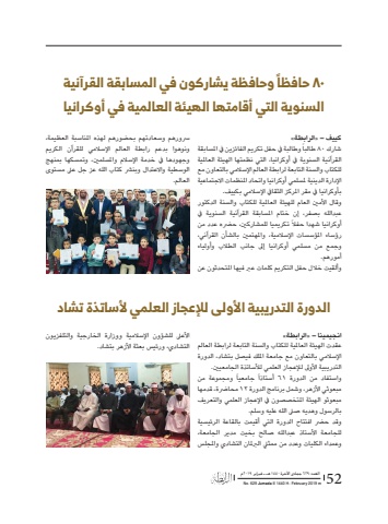 %u0627%u0644%u0639%u062f%u062f: %u0666%u0662%u0669 %u062c%u0645%u0627%u062f%u0649 %u0627%u0622%u0644%u062e%u0631%u0629 %u0661%u0664%u0664%u0660 %u0647%u0640 %u0640 %u0641%u0628%u0631%u0627%u064a%u0631 %u0662%u0660%u0661%u0669%u0645 52No. 629 Jumada II 1440 H- February 2019 m%u0643%u064a%u064a%u0641 %u2013 %u00bb%u0627%u0644%u0631%u0627%u0628%u0637%u0629%u00ab%u064b %u0648%u0637%u0627%u0644%u0628%u0629 %u064a%u0641 %u062d%u0641%u0644 %u062a%u0643%u0631%u064a%u0645 %u0627%u0644%u0641%u0627%u0626%u0632%u064a%u0646 %u064a%u0641 %u0627%u0645%u0644%u0633%u0627%u0628%u0642%u0629 %u0634%u0627%u0631%u0643 80 %u0637%u0627%u0644%u0628%u0627%u0627%u0644%u0642%u0631%u0622%u0646%u064a%u0629 %u0627%u0644%u0633%u0646%u0648%u064a%u0629 %u064a%u0641 %u0623%u0648%u0643%u0631%u0627%u0646%u064a%u0627%u060c %u0627%u0644%u062a%u064a %u0646%u0638%u0645%u062a%u0647%u0627 %u0627%u0644%u0647%u064a%u0626%u0629 %u0627%u0644%u0639%u0627%u0645%u0644%u064a%u0629 %u0644%u0644%u0643%u062a%u0627%u0628 %u0648%u0627%u0644%u0633%u0646%u0629 %u0627%u0644%u062a%u0627%u0628%u0639%u0629 %u0644%u0631%u0627%u0628%u0637%u0629 %u0627%u0644%u0639%u0627%u0644%u0645 %u0627%u0625%u0644%u0633%u0627%u0644%u0645%u064a %u0628%u0627%u0644%u062a%u0639%u0627%u0648%u0646 %u0645%u0639 %u0627%u0625%u0644%u062f%u0627%u0631%u0629 %u0627%u0644%u062f%u064a%u0646%u064a%u0629 %u0645%u0644%u0633%u0644%u0645%u064a %u0623%u0648%u0643%u0631%u0627%u0646%u064a%u0627 %u0648%u0627%u062a%u062d%u0627%u062f %u0627%u0645%u0644%u0646%u0638%u0645%u0627%u062a %u0627%u0627%u0644%u062c%u062a%u0645%u0627%u0639%u064a%u0629 %u0628%u0623%u0648%u0643%u0631%u0627%u0646%u064a%u0627 %u064a%u0641 %u0645%u0642%u0631 %u0627%u0645%u0644%u0631%u0643%u0632 %u0627%u0644%u062b%u0642%u0627%u064a%u0641 %u0627%u0625%u0644%u0633%u0627%u0644%u0645%u064a %u0628%u0643%u064a%u064a%u0641.%u0648%u0642%u0627%u0644 %u0627%u0623%u0644%u0645%u0646%u064a %u0627%u0644%u0639%u0627%u0645 %u0644%u0644%u0647%u064a%u0626%u0629 %u0627%u0644%u0639%u0627%u0645%u0644%u064a%u0629 %u0644%u0644%u0643%u062a%u0627%u0628 %u0648%u0627%u0644%u0633%u0646%u0629 %u0627%u0644%u062f%u0643%u062a%u0648%u0631 %u0639%u0628%u062f%u0627%u0644%u0644%u0647 %u0628%u0635%u0641%u0631%u060c %u0625%u0646 %u062e%u062a%u0627%u0645 %u0627%u0645%u0644%u0633%u0627%u0628%u0642%u0629 %u0627%u0644%u0642%u0631%u0622%u0646%u064a%u0629 %u0627%u0644%u0633%u0646%u0648%u064a%u0629 %u064a%u0641 %u064b %u062a%u0643%u0631%u064a%u0645%u064a%u0627 %u0644%u0644%u0645%u0634%u0627%u0631%u0643%u0646%u064a%u060c %u062d%u0631%u0636%u0647 %u0639%u062f%u062f %u0645%u0646 %u0623%u0648%u0643%u0631%u0627%u0646%u064a%u0627 %u0634%u0647%u062f%u0627 %u062d%u0641%u0627%u0644%u0631%u0624%u0633%u0627%u0621 %u0627%u0645%u0644%u0624%u0633%u0633%u0627%u062a %u0627%u0625%u0644%u0633%u0627%u0644%u0645%u064a%u0629%u060c %u0648%u0627%u0645%u0644%u0647%u062a%u0645%u0646%u064a %u0628%u0627%u0644%u0634%u0623%u0646 %u0627%u0644%u0642%u0631%u0622%u0646%u064a%u060c %u0648%u062c%u0645%u0639 %u0645%u0646 %u0645%u0633%u0644%u0645%u064a %u0623%u0648%u0643%u0631%u0627%u0646%u064a%u0627 %u0625%u0649%u0644 %u062c%u0627%u0646%u0628 %u0627%u0644%u0637%u0627%u0644%u0628 %u0648%u0623%u0648%u0644%u064a%u0627%u0621 %u0623%u0645%u0648%u0631%u0647%u0645.%u0648%u0623%u0644%u0642%u064a%u062a %u062e%u0627%u0644%u0644 %u062d%u0641%u0644 %u0627%u0644%u062a%u0643%u0631%u064a%u0645 %u0643%u0644%u0645%u0627%u062a %u0639%u0631%u0628 %u0641%u064a%u0647%u0627 %u0627%u0645%u0644%u062a%u062d%u062f%u062b%u0648%u0646 %u0639%u0646 %u0631%u0633%u0648%u0631%u0647%u0645 %u0648%u0633%u0639%u0627%u062f%u062a%u0647%u0645 %u0628%u062d%u0636%u0648%u0631%u0647%u0645 %u0644%u0647%u0630%u0647 %u0627%u0645%u0644%u0646%u0627%u0633%u0628%u0629 %u0627%u0644%u0639%u0638%u064a%u0645%u0629%u060c %u0648%u0646%u0648%u0647%u0648%u0627 %u0628%u062f%u0639%u0645 %u0631%u0627%u0628%u0637%u0629 %u0627%u0644%u0639%u0627%u0644%u0645 %u0627%u0625%u0644%u0633%u0627%u0644%u0645%u064a %u0644%u0644%u0642%u0631%u0622%u0646 %u0627%u0644%u0643%u0631%u064a%u0645 %u0648%u062c%u0647%u0648%u062f%u0647%u0627 %u064a%u0641 %u062e%u062f%u0645%u0629 %u0627%u0625%u0644%u0633%u0627%u0644%u0645 %u0648%u0627%u0645%u0644%u0633%u0644%u0645%u0646%u064a%u060c %u0648%u062a%u0645%u0633%u0643%u0647%u0627 %u0628%u0645%u0646%u0647%u062c %u0627%u0644%u0648%u0633%u0637%u064a%u0629 %u0648%u0627%u0627%u0644%u0639%u062a%u062f%u0627%u0644 %u0648%u0628%u0646%u0631%u0634 %u0643%u062a%u0627%u0628 %u0627%u0644%u0644%u0647 %u0639%u0632 %u062c%u0644 %u0639%u0649%u0644 %u0645%u0633%u062a%u0648%u0649 %u0627%u0644%u0639%u0627%u0644%u0645.%u0627%u0646%u062c%u064a%u0645%u064a%u0646%u0627 %u2013 %u00bb%u0627%u0644%u0631%u0627%u0628%u0637%u0629%u00ab%u0639%u0642%u062f%u062a %u0627%u0644%u0647%u064a%u0626%u0629 %u0627%u0644%u0639%u0627%u0645%u0644%u064a%u0629 %u0644%u0644%u0643%u062a%u0627%u0628 %u0648%u0627%u0644%u0633%u0646%u0629 %u0627%u0644%u062a%u0627%u0628%u0639%u0629 %u0644%u0631%u0627%u0628%u0637%u0629 %u0627%u0644%u0639%u0627%u0644%u0645 %u0627%u0625%u0644%u0633%u0627%u0644%u0645%u064a %u0628%u0627%u0644%u062a%u0639%u0627%u0648%u0646 %u0645%u0639 %u062c%u0627%u0645%u0639%u0629 %u0627%u0645%u0644%u0644%u0643 %u0641%u064a%u0635%u0644 %u0628%u062a%u0634%u0627%u062f%u060c %u0627%u0644%u062f%u0648%u0631%u0629 %u0627%u0644%u062a%u062f%u0631%u064a%u0628%u064a%u0629 %u0627%u0623%u0644%u0648%u0649%u0644 %u0644%u0625%u0644%u0639%u062c%u0627%u0632 %u0627%u0644%u0639%u0644%u0645%u064a %u0644%u0623%u0644%u0633%u0627%u062a%u0630%u0629 %u0627%u0644%u062c%u0627%u0645%u0639%u064a%u0646%u064a.%u064b %u0648%u0645%u062c%u0645%u0648%u0639%u0629 %u0645%u0646 %u064b %u062c%u0627%u0645%u0639%u064a%u0627%u0648%u0627%u0633%u062a%u0641%u0627%u062f %u0645%u0646 %u0627%u0644%u062f%u0648%u0631%u0629 61 %u0623%u0633%u062a%u0627%u0630%u0627%u0645%u0628%u0639%u0648%u062b%u064a %u0627%u0623%u0644%u0632%u0647%u0631%u060c %u0648%u0634%u0645%u0644 %u0628%u0631%u0646%u0627%u0645%u062c %u0627%u0644%u062f%u0648%u0631%u0629 12 %u0645%u062d%u0627%u0631%u0636%u0629%u060c %u0642%u062f%u0645%u0647%u0627 %u0645%u0628%u0639%u0