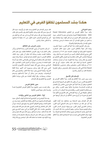 %u0627%u0644%u0639%u062f%u062f: %u0666%u0662%u0669 %u062c%u0645%u0627%u062f%u0649 %u0627%u0622%u0644%u062e%u0631%u0629 %u0661%u0664%u0664%u0660 %u0647%u0640 %u0640 %u0641%u0628%u0631%u0627%u064a%u0631 %u0662%u0660%u0661%u0669%u0645 55No. 629 Jumada II 1440 H- February 2019 m%u0633%u0639%u064a%u062f %u0627%u0644%u062e%u0648%u062a%u0627%u0646%u064a%u064a%u0623%u062e%u0630 %u0645%u0628%u062f%u0623 %u062a%u0643%u0627%u0641%u0624 %u0627%u0644%u0641%u0631%u0635 %u064a%u0641 %u0627%u0644%u062a%u0639%u0644%u064a%u0645 Education EqualEEO Opportunity %u0623%u0647%u0645%u064a%u0629 %u0645%u062a%u0632%u0627%u064a%u062f%u0629 %u064a%u0641 %u0639%u0631%u0635%u0646%u0627 %u0627%u0644%u062d%u0627%u0631%u0636 %u062d%u064a%u062b %u062a%u0646%u0635 %u0639%u0644%u064a%u0647 %u0642%u0648%u0627%u0646%u0646%u064a %u0623%u0643%u062b%u0631 %u0627%u0644%u062f%u0648%u0644%u060c %u0625%u0646 %u0644%u0645 %u062a%u0643%u0646 %u0643%u0644%u0647%u0627%u060c %u0633%u0648 %u064b %u0627%u0621 %u0628%u0642%u0646%u0627%u0639%u0629 %u0645%u0646%u0647%u0627 %u0628%u0647 %u0643%u062d%u0642 %u0645%u0646 %u062d%u0642%u0648%u0642 %u0627%u0625%u0644%u0646%u0633%u0627%u0646%u060c %u0623%u0648 %u062a%u062d%u062a %u0636%u063a%u0637 %u0645%u0627 %u064a%u0633%u0645%u0649 %u0628%u062c%u0645%u0627%u0639%u0627%u062a %u062d%u0642%u0648%u0642 %u0627%u0625%u0644%u0646%u0633%u0627%u0646 %u0648%u0627%u0644%u062f%u064a%u0645%u0642%u0631%u0627%u0637%u064a%u0629 %u0648%u0627%u0644%u0639%u0648%u0645%u0644%u0629. %u064b %u0628%u0627%u0644%u0648%u0631%u0648%u062f%u060c %u0648%u0644%u0645 %u064a%u0643%u0646 %u0627%u0644%u0637%u0631%u064a%u0642 %u0625%u0644%u0642%u0631%u0627%u0631 %u0647%u0630%u0627 %u0627%u0645%u0644%u0628%u062f%u0623 %u064a%u0641 %u0627%u0644%u063a%u0631%u0628%u060c %u0645%u0645%u0647%u062f%u0627%u064b %u0628%u0627%u0644%u0643%u0641%u0627%u062d %u0627%u0645%u0644%u0631%u064a%u0631%u060c %u0641%u0639%u0649%u0644 %u0633%u0628%u064a%u0644 %u0627%u0645%u0644%u062b%u0627%u0644 %u0627%u0636%u0637%u0631%u062a %u0648%u0625%u0646%u0645%u0627 %u0643%u0627%u0646 %u0645%u0644%u064a%u0626%u0627%u0627%u0644%u062d%u0643%u0648%u0645%u0629 %u0627%u0644%u0641%u064a%u062f%u0631%u0627%u0644%u064a%u0629 %u064a%u0641 %u0627%u0644%u0648%u0627%u0644%u064a%u0627%u062a %u0627%u0645%u0644%u062a%u062d%u062f%u0629 %u0639%u0627%u0645 1957%u0645 %u0627%u0644%u0633%u062a%u062e%u062f%u0627%u0645 %u0623%u0644%u0641%u064a %u062c%u0646%u062f%u064a %u0644%u062a%u0645%u0643%u0646%u064a %u0627%u0644%u0637%u0627%u0644%u0628 %u0627%u0644%u0633%u0648%u062f %u0645%u0646 %u0627%u0644%u062f%u062e%u0648%u0644 %u0645%u0644%u062f%u0631%u0633%u0629 %u0644%u064a%u062a%u0644 %u0631%u0648%u0643%u060c %u064a%u0641 %u0648%u0627%u0644%u064a%u0629 %u0623%u0631%u0643%u0646%u0633%u0648%u060c %u0627%u0644%u062a%u064a %u0643%u0627%u0646%u062a %u0645%u0642%u062a%u0631%u0635%u0629 %u0639%u0649%u0644 %u0627%u0644%u0628%u064a%u0636 %u0644%u062a%u0644%u0642%u064a %u0627%u0644%u062a%u0639%u0644%u064a%u0645 %u0645%u0639 %u0627%u0644%u0628%u064a%u0636 %u064a%u0641 %u0645%u0643%u0627%u0646 %u0648%u0627%u062d%u062f. %u0648%u062c%u0627%u0621 %u0647%u0630%u0627 %u0627%u0625%u0644%u062c%u0631%u0627%u0621 %u0628%u0639%u062f %u0623%u0646 %u0646%u062c%u062d%u062a %u062c%u0645%u0627%u0639%u0627%u062a %u0627%u0644%u062d%u0642%u0648%u0642 %u0627%u0645%u0644%u062f%u0646%u064a%u0629 %u064a%u0641 %u0627%u0644%u0628%u0627%u0644%u062f %u0642%u0628%u0644 %u0630%u0644%u0643 %u0628%u062b%u0627%u0644%u062b %u0633%u0646%u0648%u0627%u062a%u060c %u0623%u064a %u064a%u0641 %u0639%u0627%u0645 1954%u0645%u060c %u064a%u0641 %u0625%u0644%u063a%u0627%u0621 %u0642%u0627%u0646%u0648%u0646 %u0645%u0646%u0641%u0635%u0644%u0648%u0646 %u0648%u0644%u0643%u0646 %u0645%u062a%u0633%u0627%u0648%u0648%u0646 SeparateEqual but %u0627%u0644%u0630%u064a %u0643%u0627%u0646 %u064a%u0631%u062a%u062c%u0645 %u064a%u0641 %u0634%u0643%u0644 %u062a%u062e%u0635%u064a%u0635 %u0645%u0631%u0627%u0641%u0642 %u062a%u0639%u0644%u064a%u0645%u064a%u0629 %u0645%u0646%u0641%u0635%u0644%u0629 %u0644%u0643%u0644 %u0645%u0646 %u0627%u0644%u0628%u064a%u0636 %u0648%u0627%u0644%u0633%u0648%u062f.%u0627%u0625%u0644%u0633%u0627%u0644%u0645 %u0643%u0627%u0646 %u0627%u0623%u0644%u0633%u0628%u0642%u0648%u0645%u0646 %u064a%u0631%u0649 %u0635%u0648%u0631 %u0647%u0630%u0627 %u0627%u0644%u0643%u0641%u0627%u062d %u064a%u0641 %u0625%u0642%u0631%u0627%u0631 %u0645%u0628%u062f%u0623 %u062a%u0643%u0627%u0641%u0624 %u0627%u0644%u0641%u0631%u0635 %u064a%u0641 %u0627%u0644%u062a%u0639%u0644%u064a%u0645 %u064a%u0641 %u0627%u0644%u063a%u0631%u0628 %u062f%u0648%u0646 %u0623%u0646 %u064a%u0643%u0648%u0646 %u0642%u062f %u0627%u0637%u0644%u0639 %u0639%u0649%u0644 %u062a%u0627%u0631%u064a%u062e %u0627%u0645%u0644%u0633%u0644%u0645%u0646%u064a %u064a%u0641 %u0627%u0644%u062a%u0639%u0644%u064a%u0645 %u0633%u064a%u0638%u0646 %u0623%u0646 %u0647%u0630%u0627 %u0627%u0645%u0644%u0628%u062f%u0623 %u0647%u0648 %u0646%u062a%u0627%u062c %u063a%u0631%u0628%u064a %u062e%u0627%u0644%u0635 %u0648%u0623%u0646 %u0627%u0644%u0641%u0636%u0644 %u064a%u0641 %u0625%u0642%u0631%u0627%u0631%u0647 %u0643%u0645%u0645%u0627%u0631%u0633%u0629 %u062d%u0636%u0627%u0631%u064a%u0629 %u0639%u0627%u0645%u0644%u064a%u0629 %u064a%u0639%u0648%u062f %u0644%u0644%u063a%u0631%u0628. %u0648%u0644%u0643%u0646 %u0645%u0639 %u0639%u062f%u0645 %u0625%u0646%u0643%u0627%u0631%u0646%u0627 %u0644%u0641%u0636%u0644 %u0627%u0644%u063a%u0631%u0628 %u0648%u0643%u0641%u0627%u062d%u0647 %u064a%u0641 %u0647%u0630%u0627 %u0627%u0645%u0644%u062c%u0627%u0644%u060c %u0627%u0644 %u0628%u062f %u0644%u0646%u0627 %u0645%u0646 %u0625%u062d%u0642%u0627%u0642 %u062d%u0642%u064a%u0642%u0629 %u0647%u064a %u0623%u0646 %u062f%u064a%u0646%u0646%u0627 %u0627%u0625%u0644%u0633%u0627%u0644%u0645%u064a %u0643%u0627%u0646 %u0627%u0623%u0644%u0633%u0628%u0642 %u064a%u0641 %u062a%u0623%u0643%u064a%u062f %u0647%u0630%u0627 %u0627%u0644%u062d%u0642 %u064a%u0641 %u0635%u0648%u0631%u0629 %u0645%u0646 %u0623%u0631%u0648%u0639 %u0635%u0648%u0631 %u0627%u0644%u062a%u0623%u064