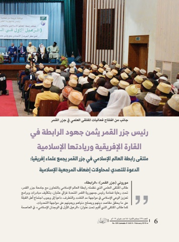 %u0631%u0626%u064a%u0633 %u062c%u0632%u0631 %u0627%u0644%u0642%u0645%u0631 %u064a%u062b%u0645%u0646 %u062c%u0647%u0648%u062f %u0627%u0644%u0631%u0627%u0628%u0637%u0629 %u0641%u064a %u0627%u0644%u0642%u0627%u0631%u0629 %u0627%u0625%u0644%u0641%u0631%u064a%u0642%u064a%u0629 %u0648%u0631%u064a%u0627%u062f%u062a%u0647%u0627 %u0627%u0625%u0644%u0633%u0627%u0644%u0645%u064a%u0629%u0645%u0644%u062a%u0642%u0649 %u0631%u0627%u0628%u0637%u0629 %u0627%u0644%u0639%u0627%u0644%u0645 %u0627%u0625%u0644%u0633%u0627%u0644%u0645%u064a %u0641%u064a %u062c%u0632%u0631 %u0627%u0644%u0642%u0645%u0631 %u064a%u062c%u0645%u0639 %u0639%u0644%u0645%u0627%u0621 %u0625%u0641%u0631%u064a%u0642%u064a%u0627: %u0627%u0644%u062f%u0639%u0648%u0629 %u0644%u0644%u062a%u0635%u062f%u064a %u0644%u0645%u062d%u0627%u0648%u0627%u0644%u062a %u0625%u0636%u0639%u0627%u0641 %u0627%u0644%u0645%u0631%u062c%u0639%u064a%u0629 %u0627%u0625%u0644%u0633%u0627%u0644%u0645%u064a%u0629%u0645%u0648%u0631%u0648%u0646%u064a )%u062c%u0632%u0631 %u0627%u0644%u0642%u0645%u0631(: %u00bb%u0627%u0644%u0631%u0627%u0628%u0637%u0629%u00ab%u0637%u0627%u0644%u0628 %u0627%u0645%u0644%u0644%u062a%u0642%u0649 %u0627%u0644%u0639%u0644%u0645%u064a %u0627%u0644%u0630%u064a %u0646%u0638%u0645%u062a%u0647 %u0631%u0627%u0628%u0637%u0629 %u0627%u0644%u0639%u0627%u0644%u0645 %u0627%u0625%u0644%u0633%u0627%u0644%u0645%u064a %u0628%u0627%u0644%u062a%u0639%u0627%u0648%u0646 %u0645%u0639 %u062c%u0627%u0645%u0639%u0629 %u062c%u0632%u0631 %u0627%u0644%u0642%u0645%u0631%u060c %u062a%u062d%u062a %u0631%u0639%u0627%u064a%u0629 %u0641%u062e%u0627%u0645%u0629 %u0631%u0626%u064a%u0633 %u062c%u0645%u0647%u0648%u0631%u064a%u0629 %u0627%u0644%u0642%u0645%u0631 %u0627%u0645%u0644%u062a%u062d%u062f%u0629 %u063a%u0632%u0627%u064a%u0644 %u0639%u062b%u0645%u0627%u0646%u060c %u0628%u062a%u0643%u062b%u064a%u0641 %u0645%u0628%u0627%u062f%u0631%u0627%u062a %u0648%u0628%u0631%u0627%u0645%u062c %u064b %u0625%u0649%u0644 %u0648%u062c%u0648%u0628 %u0627%u062c%u062a%u0645%u0627%u0639 %u0623%u0647%u0644 %u0627%u0644%u0642%u0628%u0644%u0629 %u062a%u0639%u0632%u064a%u0632 %u0627%u0644%u0648%u0639%u064a %u0627%u0625%u0644%u0633%u0627%u0644%u0645%u064a %u064a%u0641 %u0645%u0648%u0627%u062c%u0647%u0629 %u0645%u062f %u0627%u0644%u062a%u0634%u062f%u062f %u0648%u0627%u0644%u062a%u0637%u0631%u0641%u060c %u062f%u0627%u0639%u064a%u0627%u0639%u0649%u0644 %u0645%u0627 %u064a%u062d%u0642%u0642 %u0645%u0642%u0627%u0635%u062f %u062f%u064a%u0646%u0647%u0645 %u0648%u064a%u0635%u0644%u062d %u062f%u0646%u064a%u0627%u0647%u0645 %u0648%u064a%u0639%u064a%u0646%u0647%u0645 %u0639%u0649%u0644 %u0645%u0648%u0627%u062c%u0647%u0629 %u0627%u0644%u062a%u062d%u062f%u064a%u0627%u062a.%u0643%u0645%u0627 %u0637%u0627%u0644%u0628 %u0627%u0645%u0644%u0644%u062a%u0642%u0649 %u0627%u0644%u0630%u064a %u0623%u0642%u064a%u0645 %u062a%u062d%u062a %u0639%u0646%u0648%u0627%u0646: %u00bb%u0627%u0644%u0631%u0639%u064a%u0644 %u0627%u0623%u0644%u0648%u0644 %u064a%u0641 %u0627%u0644%u0648%u062c%u062f%u0627%u0646 %u0627%u0625%u0644%u0633%u0627%u0644%u0645%u064a%u00ab%u060c %u064a%u0641 %u0627%u0644%u0639%u0627%u0635%u0645%u0629 ,,%u0627%u0644%u0639%u062f%u062f: %u0666%u0662%u0669 %u062c%u0645%u0627%u062f%u0649 %u0627%u0622%u0644%u062e%u0631%u0629 %u0661%u0664%u0664%u0660 %u0647%u0640 %u0640 %u0641%u0628%u0631%u0627%u064a%u0631 %u0662%u0660%u0661%u0669%u0645 6No. 629 Jumada II 1440 H- February 2019 m%u062c%u0627%u0646%u0628 %u0645%u0646 %u0627%u0641%u062a%u062a%u0627%u062d %u0641%u0639%u0627%u0644%u064a%u0627%u062a %u0627%u0645%u0644%u0644%u062a%u0642%u0649 %u0627%u0644%u0639%u0644%u0645%u064a %u064a%u0641 %u062c%u0632%u0631 %u0627%u0644%u0642%u0645%u0631