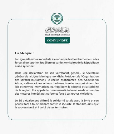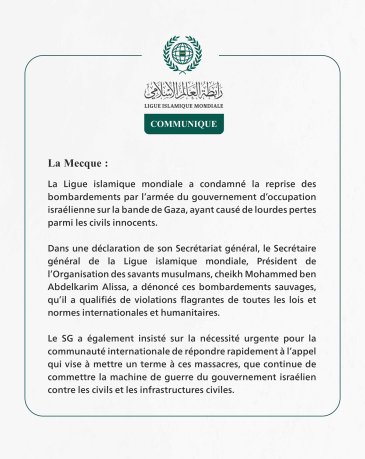 Communiqué de la Ligueislamiquemondiale :