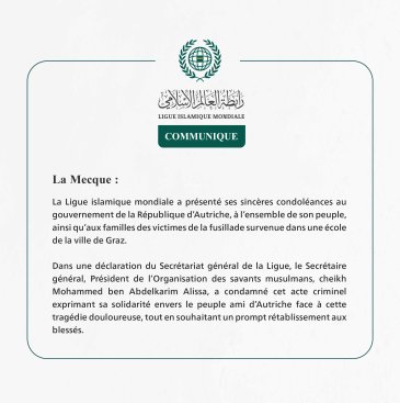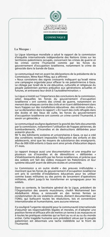 Communiqué de la Ligueislamiquemondiale :