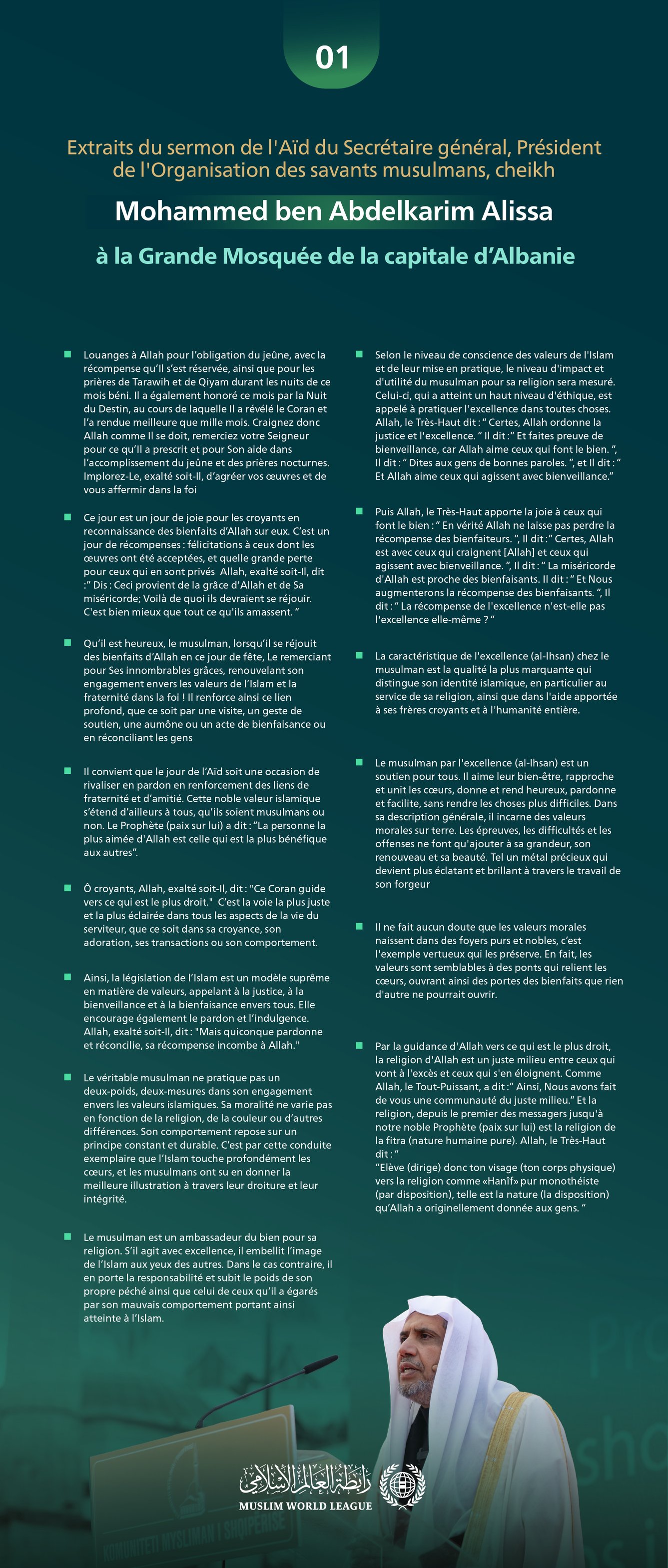 Excerpts from the Eid sermon of the Secretary-General, President of the Organization of Muslim Scholars, Sheikh Mohammed Alissa, in response to the invitation of the President of the Republic.