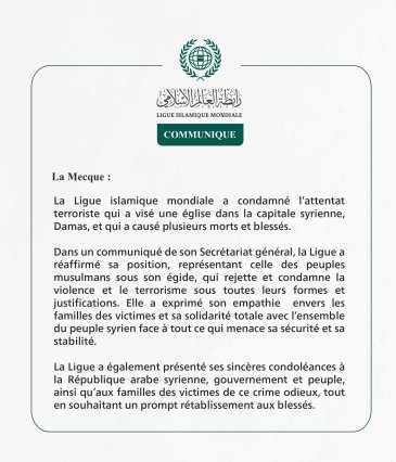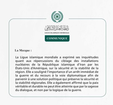La Ligue islamique mondiale a salué la déclaration conjointe publiée par les dirigeants du Royaume-Uni, de la République française et du Canada, concernant la situation à Gaza et en Cisjordanie, qui évoque la possibilité de prendre des mesures concrètes, y compris l’imposition de sanctions ciblées, si le gouvernement d’occupation israélienne ne met pas fin à ses nouvelles opérations militaires, à la construction de colonies, et ne lève pas les restrictions à l’entrée de l’aide humanitaire.