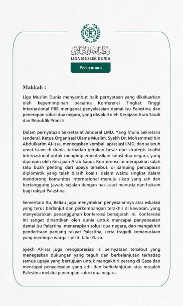 Pernyataan dari Liga Muslim Dunia: Minggu, Oktober 29, 2023 - 09:36