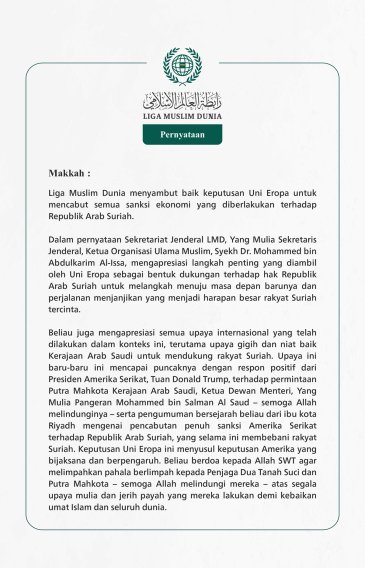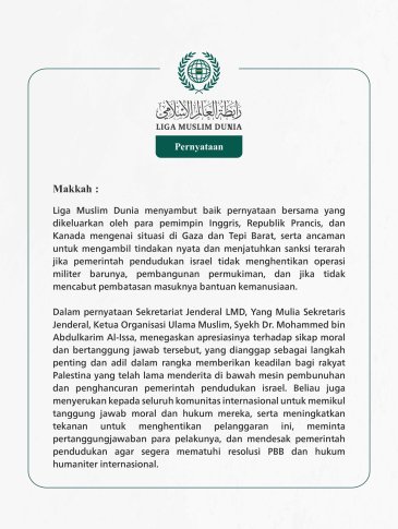 Pernyataan dari Liga Muslim Dunia: Sabtu, September 14, 2024 - 07:44
