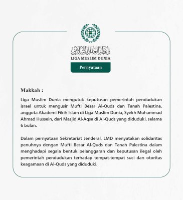 Pernyataan dari Liga Muslim Dunia: Selasa, Desember 31, 2024 - 08:07