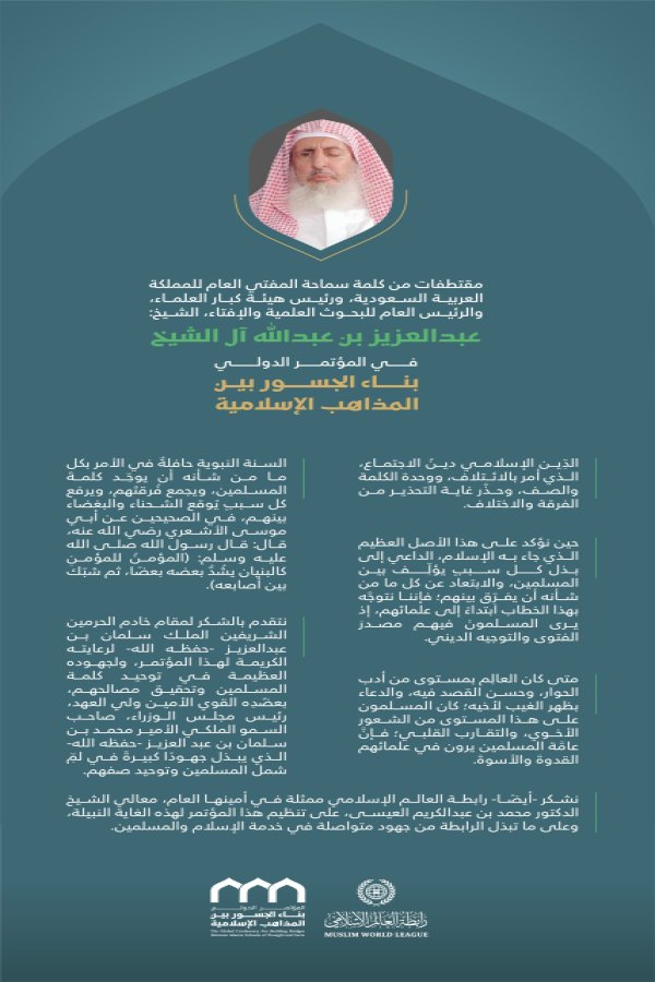 من كلمة سماحة المفتي العام للمملكة العربية السعودية، ورئيس هيئة كبار العلماء، والرئيس العام للبحوث العلمية والإفتاء، الشيخ عبدالعزيز بن عبدالله آل…
