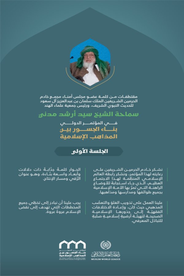 مقتطفاتٌ من كلمةِ سماحة رئيس جمعية علماء الهند، الشيخ سيد أرشد مدني، في الجلسة الأولى للمؤتمر الدولي: "بناء الجسور بين المذاهب الإسلامية"…