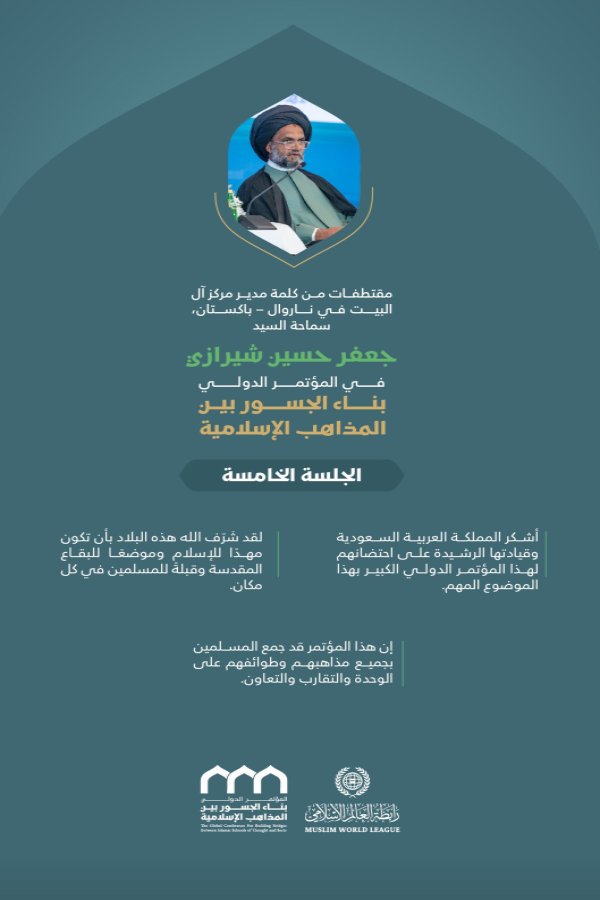 مقتطفات من كلمة سماحة السيد جعفر حسين شيرازي، مدير مركز آل البيت في نارووال بباكستان، خلال المؤتمر الدولي: "بناء الجسور بين المذاهب الإسلامية…