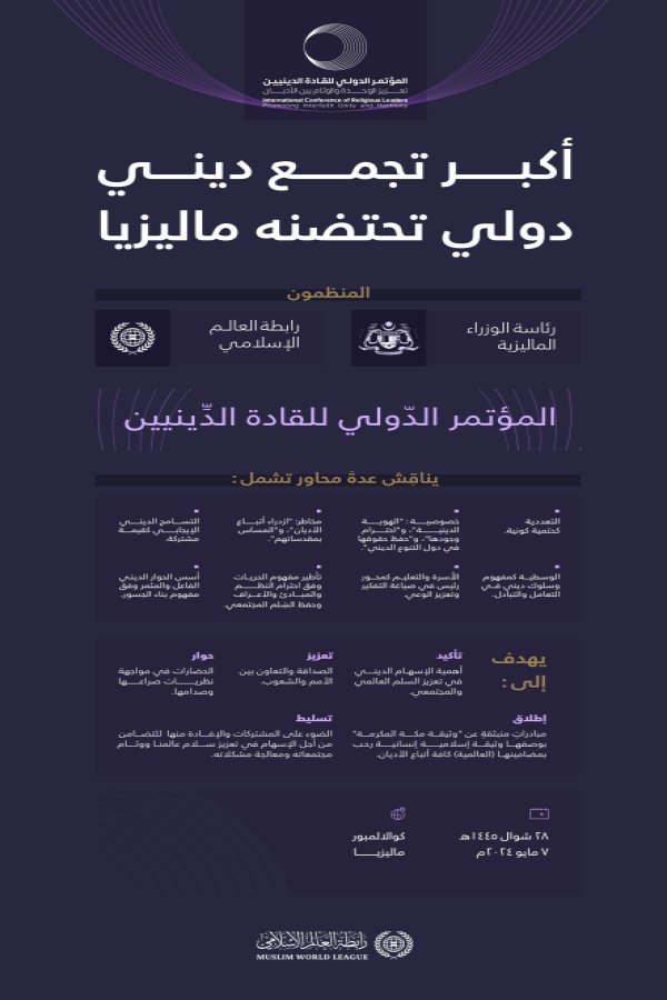 "المؤتمر الدولي للقادة الدينيين"؛ يحمل المؤتمرُ شعارَ "تعزيز الوئام بين أتباع الأديان"؛ وسيناقِش محاورَ عِدّة، تتعلَّق…