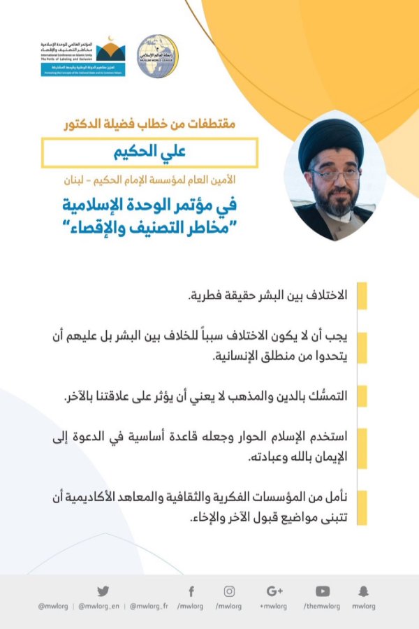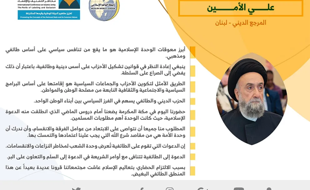 سماحة السيد علي الأمين المرجع الشيعي اللبناني، مخاطباً 1200 شخصية إسلامية يمثلون 28 مكوِّناً إسلامياً في…