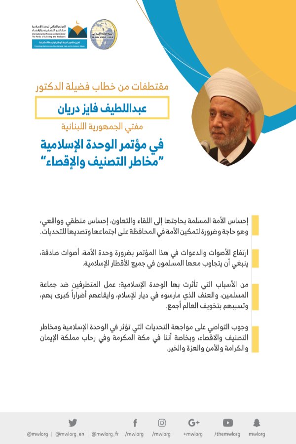 فضيلة الشيخ د. عبد اللطيف دريان مفتي لبنان مخاطباً 1200 شخصية إسلامية من 127 دولة يمثلون 28 مُكَوِّناً…