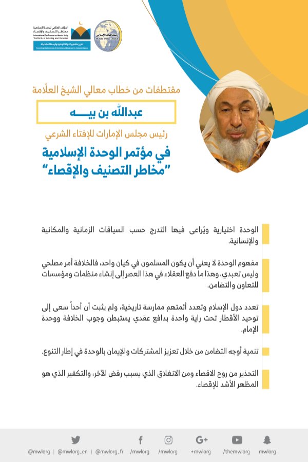معالي الشيخ عبدالله بن بيه مخاطباً 1200 شخصية إسلامية من 127 دولة يمثلون 28 مُكَوِّناً إسلامياً في مؤتمر…