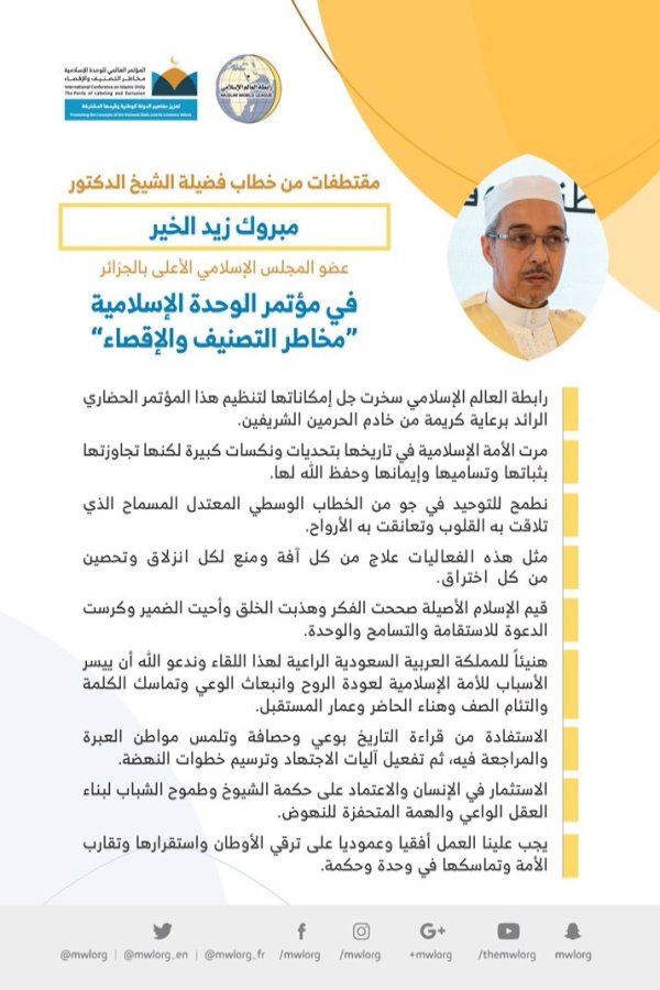 فضيلة الشيخ الدكتور مبروك زيد الخير عضو المجلس الإسلامي الأعلى في الجزائر مخاطباً 1200 شخصية إسلامية…