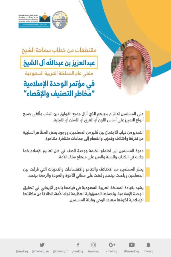 سماحة مفتي عام المملكة العربية السعودية رئيس هيئة كبار العلماء مخاطباً 1200 شخصية إسلامية من 127 دولة…