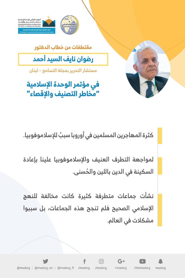 المفكر والداعية الإسلامي الشهير الشيخ يوسف استس مخاطباً 1200 شخصية إسلامية من 127 دولة يمثلون 28…