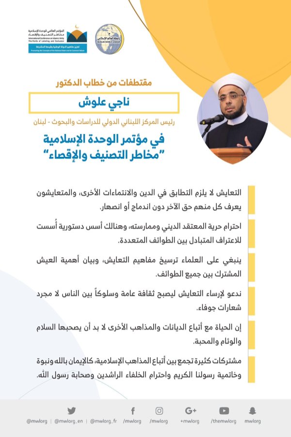 فضيلة الشيخ غسان الحلبي مستشار مشيخة عقل طائفة الموحدين الدروز في لبنان مخاطباً 1200 شخصية إسلامية من…