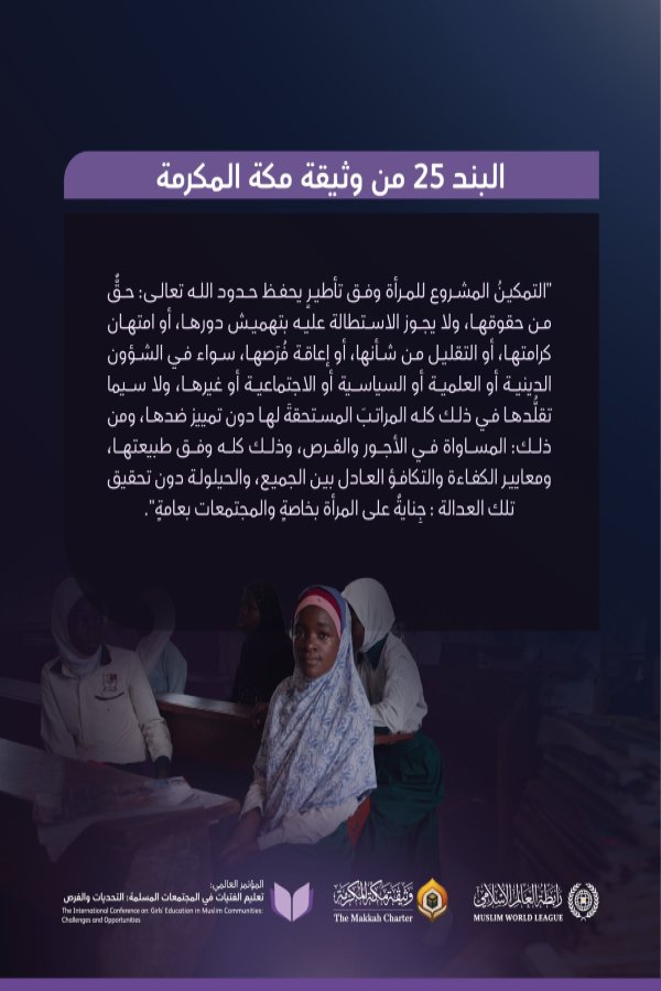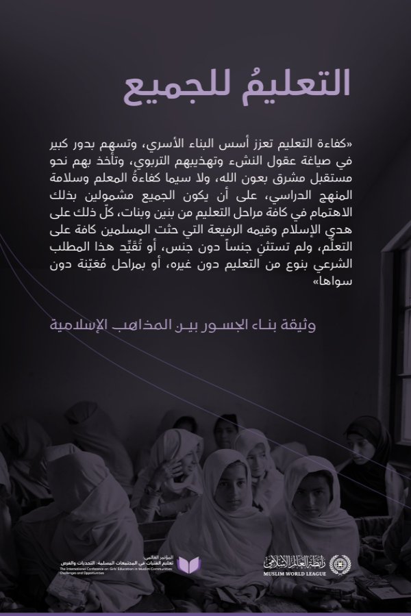 برعاية وحضور دولة رئيس الوزراء الباكستاني، السيد محمد شهباز شريف، وبمبادرة من رابطة العالم الإسلامي تطلق الرابطة من العاصمة الباكستانية إسلام آباد، منصة الشراكات الدولية الأوسع لدعم تعليم الفتيات في المجتمعات المسلمة بتحالفاتٍ بين المنظمات الأممية والحكومية والأهلية الإسلامية والدولية. وتأتي هذه المبادرة تعزيزاً لتفعيل مضامين المادة (٢٥) من وثيقة مكة المكرمة، والمادتين (٢٢) و (٢٣) من وثيقة بناء الجسور بين المذاهب الإسلامية المشمول مؤتمراهما الدوليّان برعاية كريمة من لدن خادم الحرمين الشريفين الملك سلمان بن عبدالعزيز آل سعود "حفظه الله"، وتفعيلاً لقرار دول منظمة التعاون الإسلامي بشأن مضامين الوثيقتين، ومذكرة التفاهم الموقعة بين معالي الأمين العام لرابطة العالم الإسلامي، ومعالي الأمين العام لمنظمة التعاون الإسلامي، ومذكرة التفاهم الموقعة بين معالي أمين عام المجمع الفقهي الإسلامي، ومعالي أمين عام مجمع الفقه الإسلامي الدولي المُوقَّعتَين في مكة المكرمة بتاريخ ٧/٩ / ١٤٤٥هـ.
