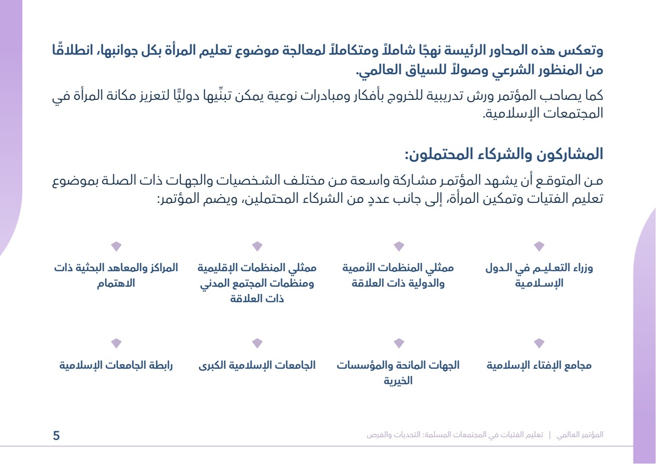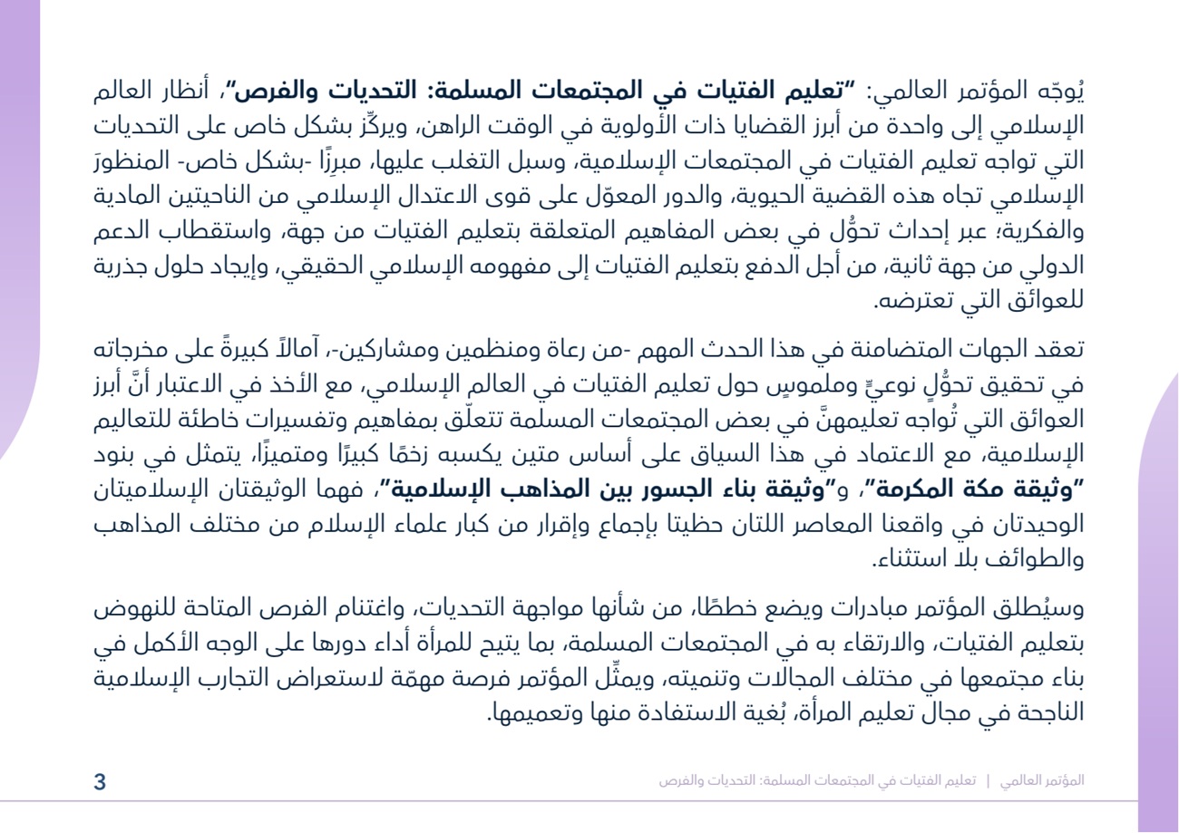 المؤتمر العالمي: تعليم الفتيات في المجتمعات المسلمة.. التحديات والفرص
