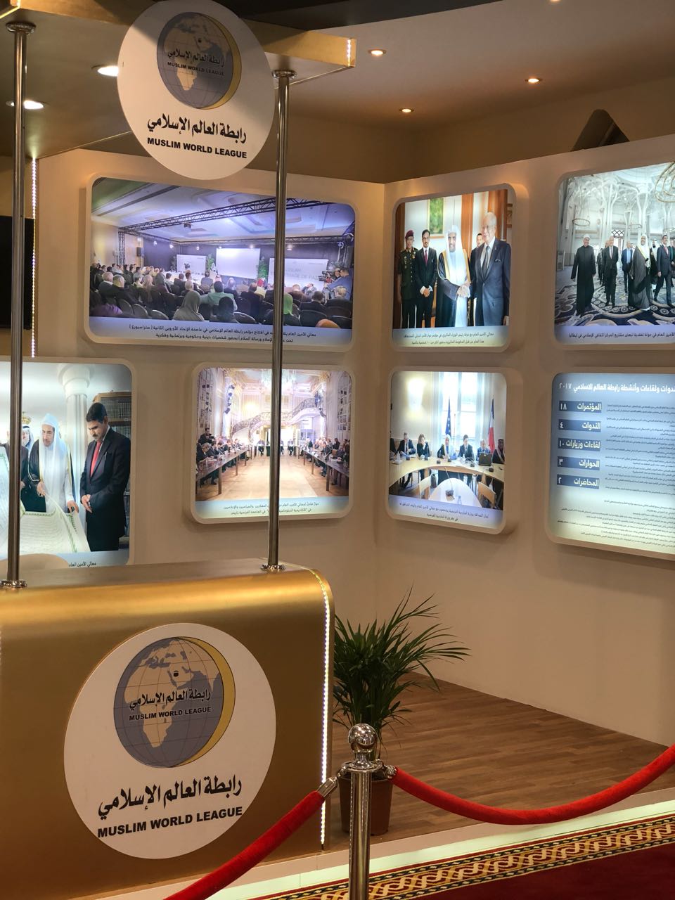 واستوقف الزوار جناح الصور التي تظهر المؤتمرات العالمية التي رعتها وشاركت بها الرابطة في مختلف دول العالم كمؤتمر رابطة العالم الإسلامي في عاصمة الاتحاد الأوربي الثانية " ستراسبورغ " والذي كان بعنوان " الاسلام ورسالة السلام " ، كذلك حضور الرابطة التاريخي كمتحدث رئيسي عن العالم الإسلامي في مؤتمر قادة الأديان العالمي في اليابان ، كما لفتت صورة معالي الأمين العام لرابطة العالم الإسلامي مع بابا الفاتيكان نظر الزوار لما تظهر من معاني سامية للتعايش السلمي بين الأديان وهذا مايظهر جلياً في خطوات وسير الرابطة الحثيث حيث تترأس الرابطة برنامجاً عالمياً عن القيم المشتركة وستعقد أول ندوة له في الشهر الجاري سيحضرها أكثر من ألف مدعو من أتباع الديانات وسيكون للمشرع بعداً عالمياً يرسخ مفهوم العودة للقيم الأخلاقية المشتركة .