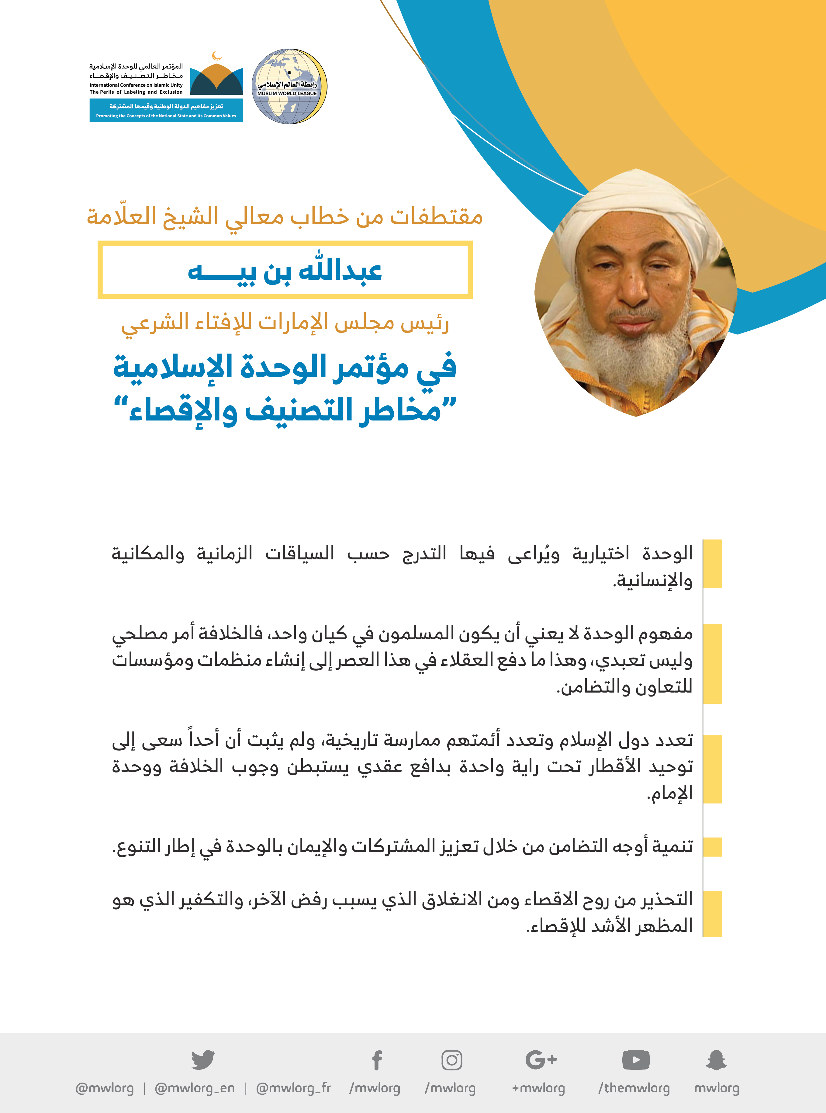مقتطفات من خطاب فضيلة الشيخ العلّامة عبدالله بن بيّه رئيس مجلس الإمارات للإفتاء الشرعي