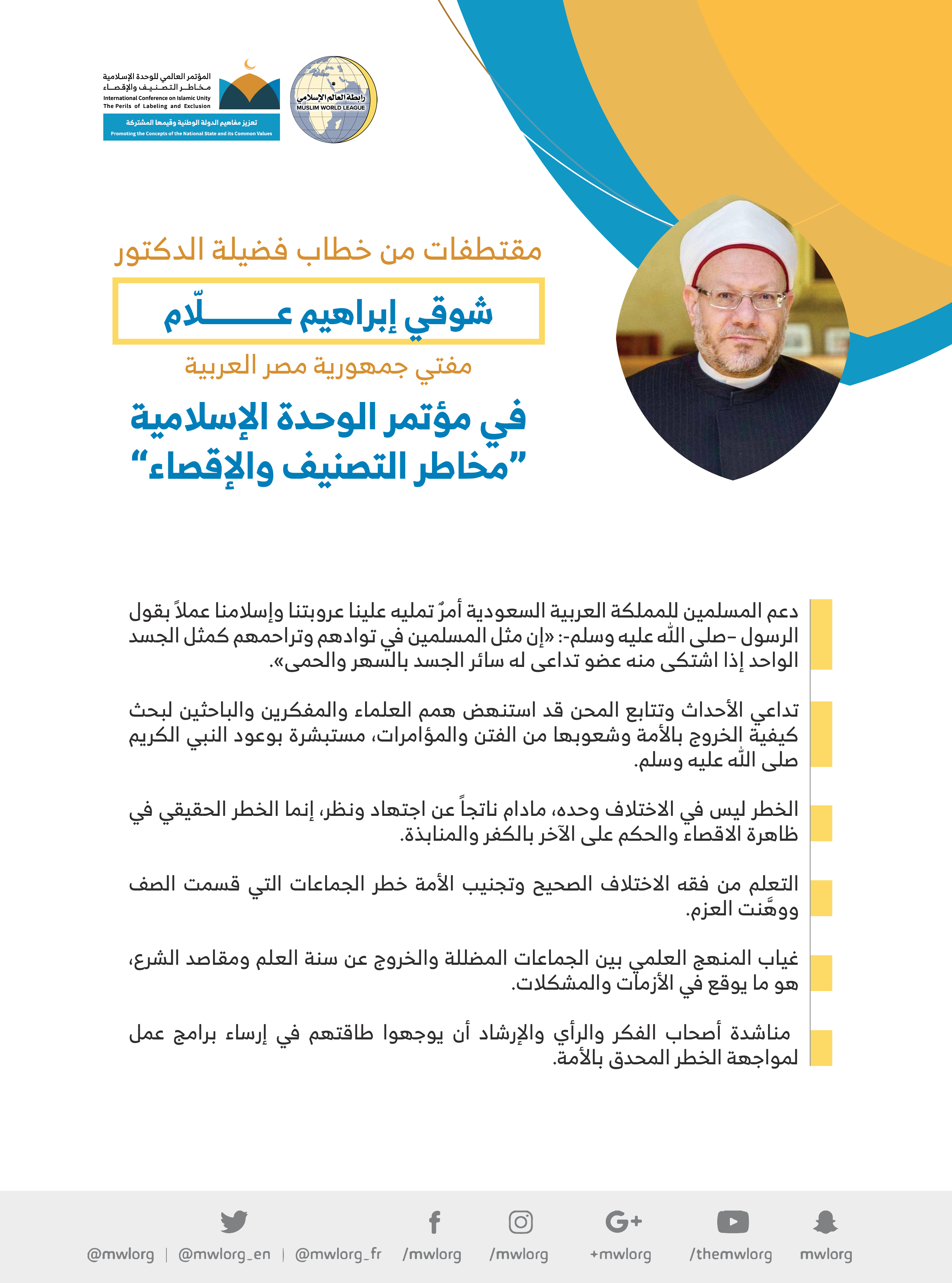 مقتطفات من خطاب فضيلة الدكتور شوقي إبراهيم علّام مفتي جمهورية مصر العربية