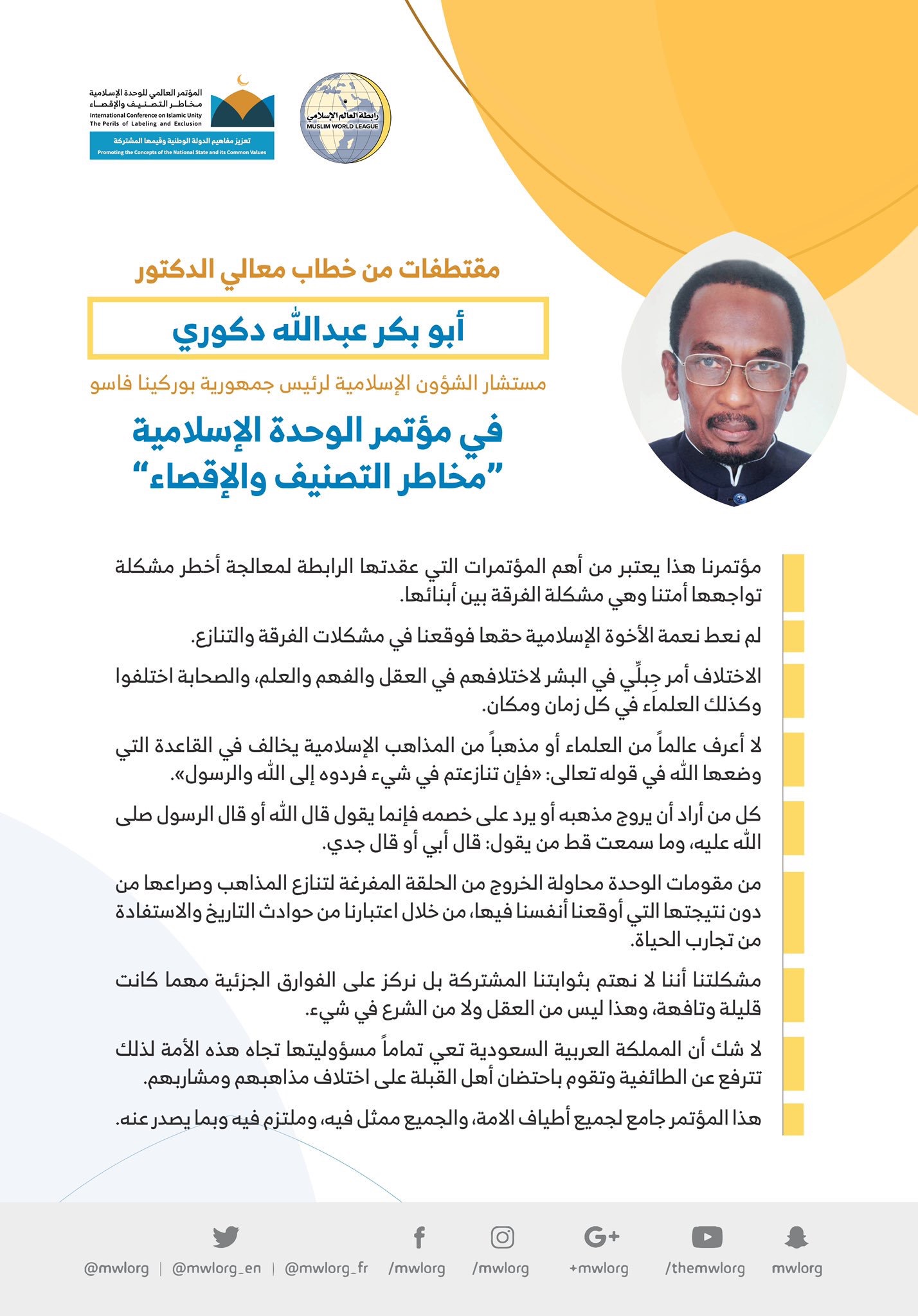 •مؤتمرنا هذا يعتبر من أهم المؤتمرات التي عقدتها الرابطة لمعالجة أخطر مشكلة تواجهها أمتنا وهي مشكلة الفرقة بين أبنائها.