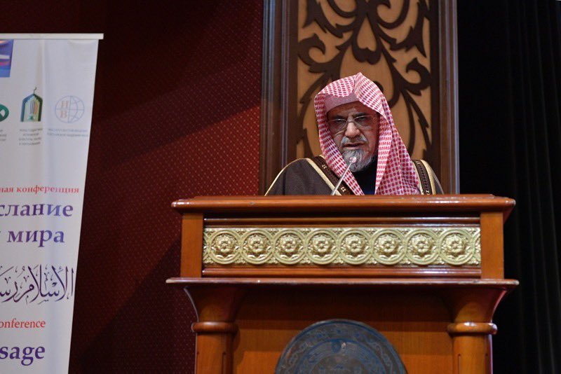 معالي الشيخ د. صالح بن حميد متحدثاً من موسكو في المؤتمر العالمي: "الإسلام رسالة الرحمة والسلام"حيث أبان فضيلته دلالات الرحمة والسلام في التشريع الإسلامي، (جديرٌ بالذكر أن المؤتمر يُعتبر الأول من نوعه في روسيا الاتحادية من جهة الرعاية الحكومية .. وبحشده الكبير في حضور متنوع).