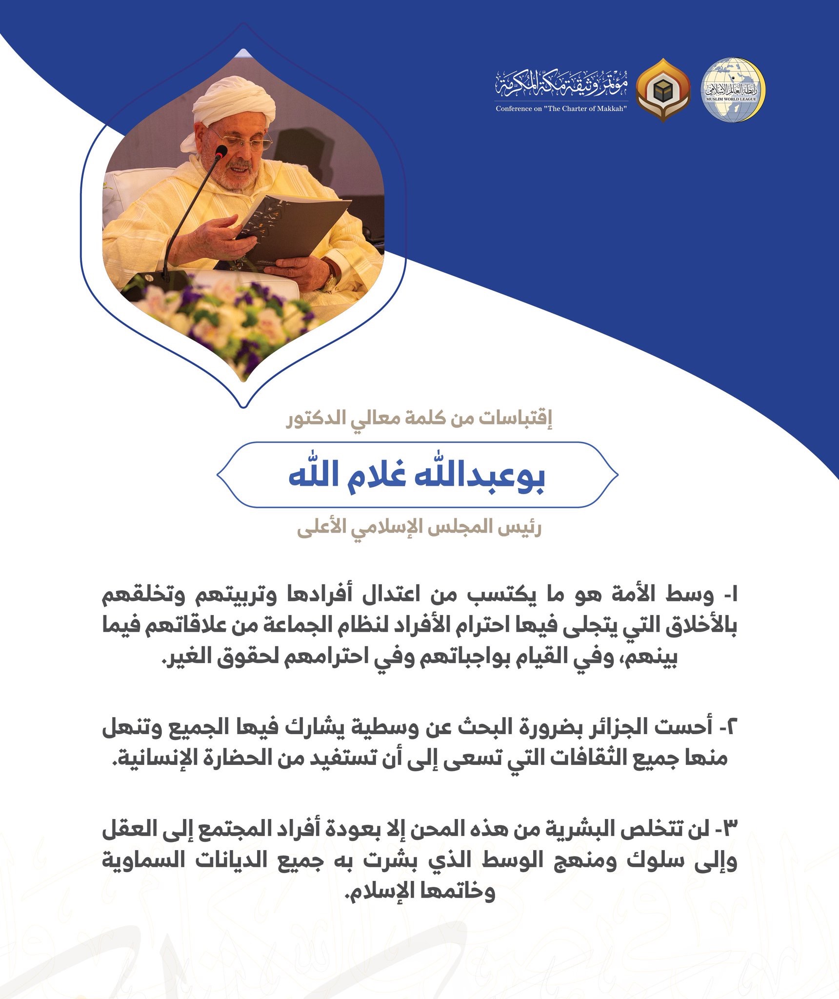معالي الدكتور بوعبد الله محمد غلام الله رئيس المجلس الإسلامي الأعلى مخاطباً 1200 شخصية إسلامية من 139 دولة في مؤتمر وثيقة مكة المكرمة: