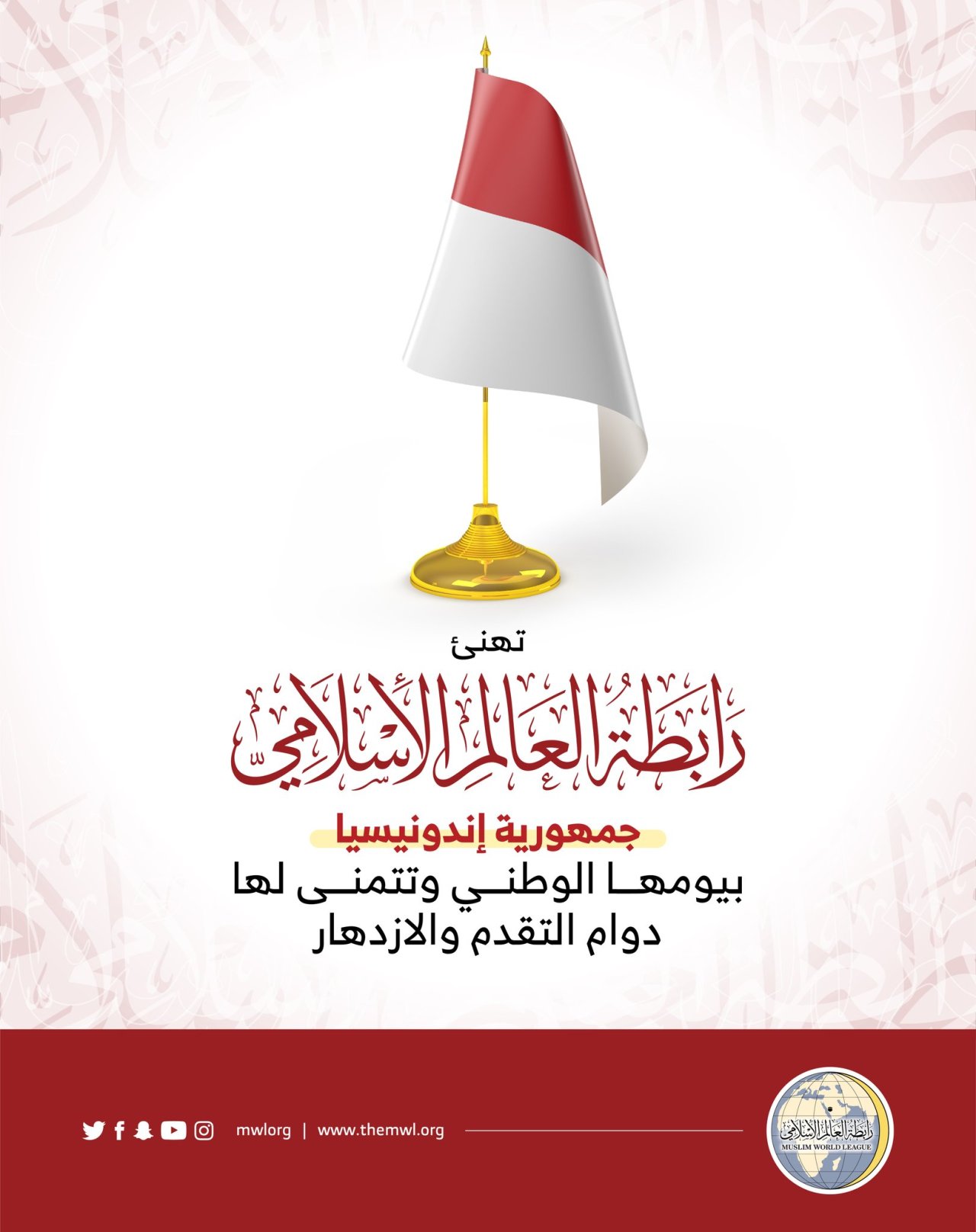 ⁧رابطة العالم الإسلامي⁩ تهنئ جمهورية إندونيسيا بيومها الوطني.