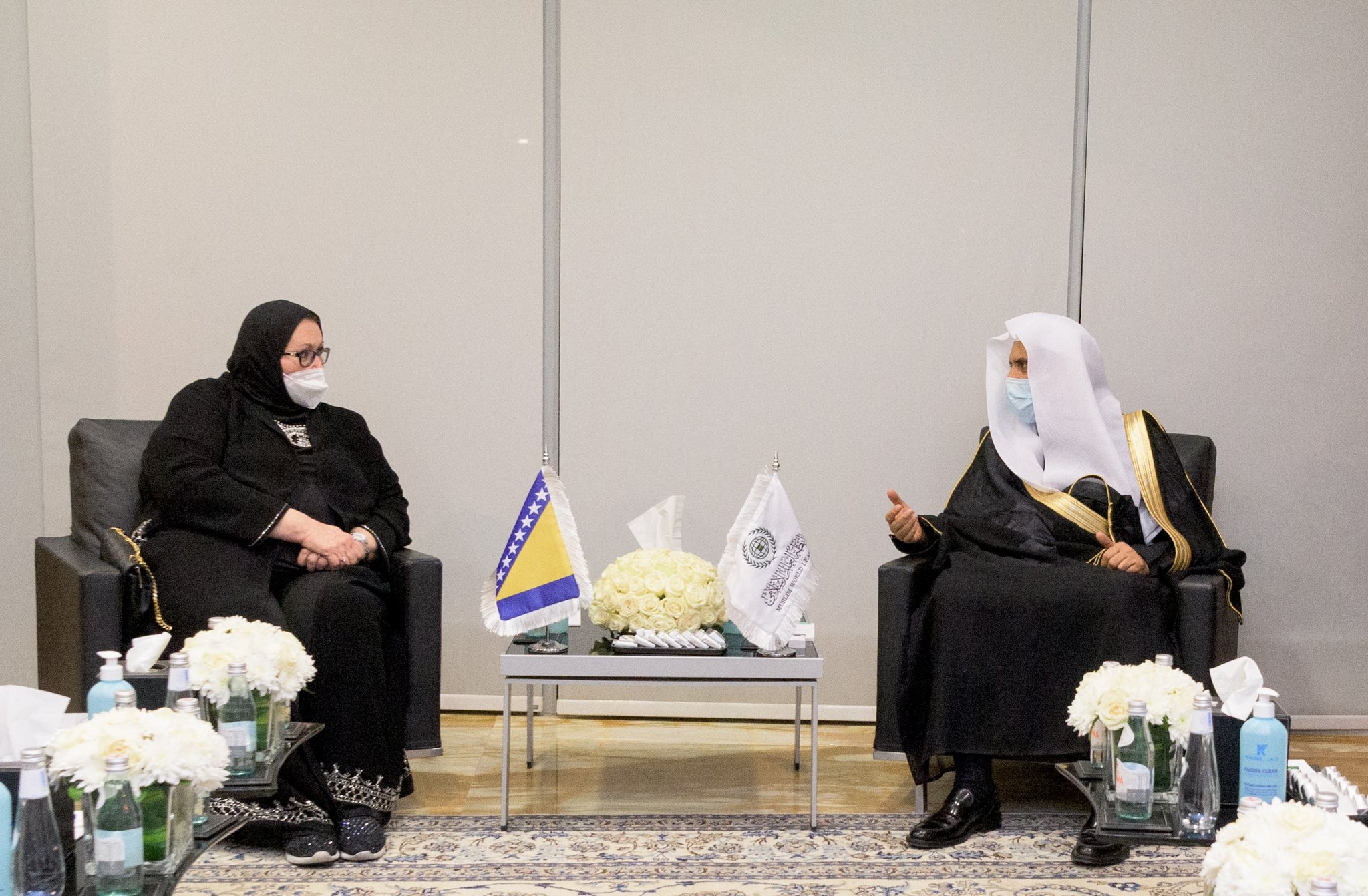 استقبل معالي الأمين العام لرابطة العالم الإسلامي الشيخ الدكتور محمد بن عبدالكريم العيسى في مكتبه نائب رئيس مجلس الوزراء وزيرة خارجية البوسنة والهرسك د.بصيرة توركوفيتش.