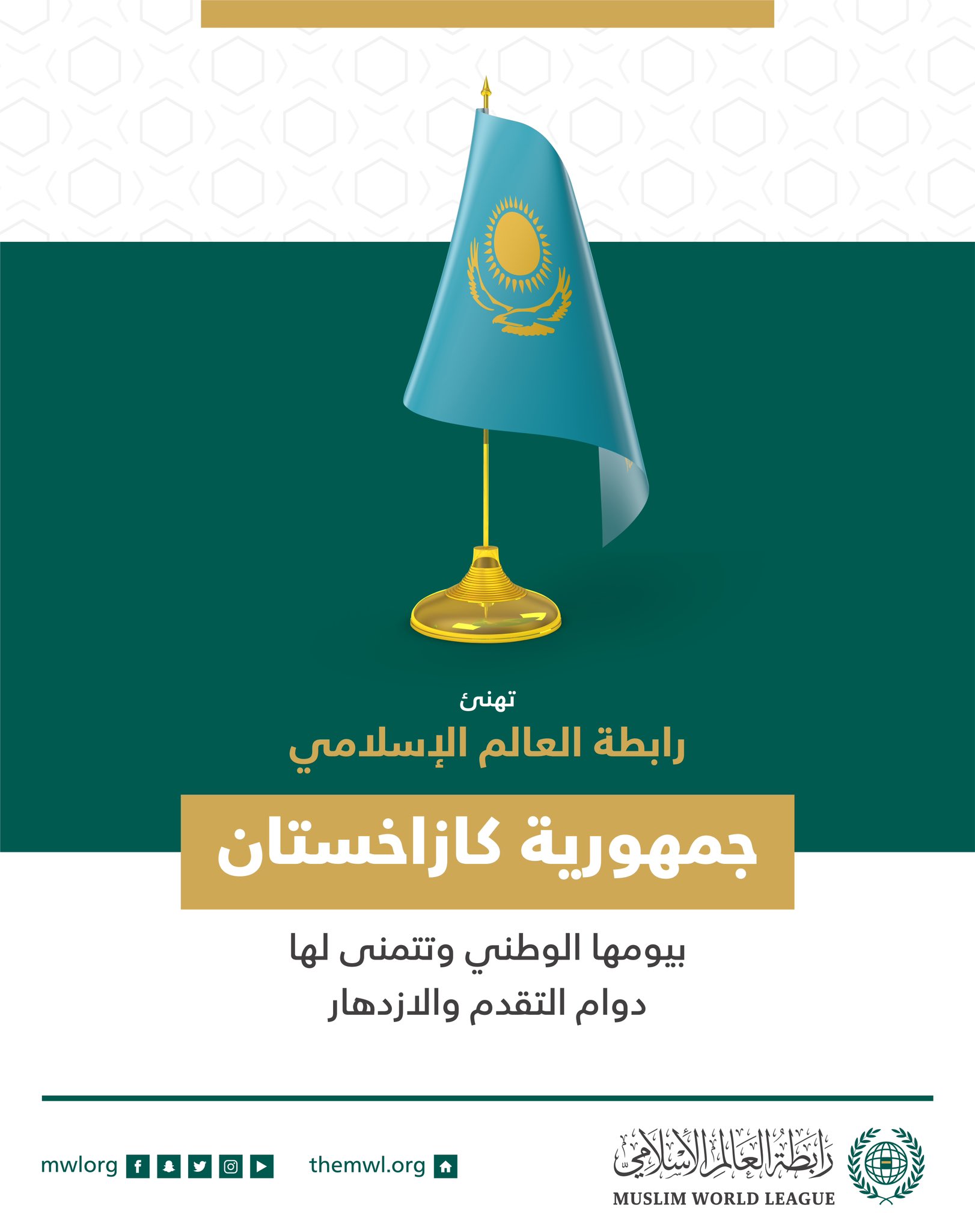 تهنئ رابطة العالم الإسلامي جمهورية كازاخستان بمناسبة ذكرى يومها الوطني .