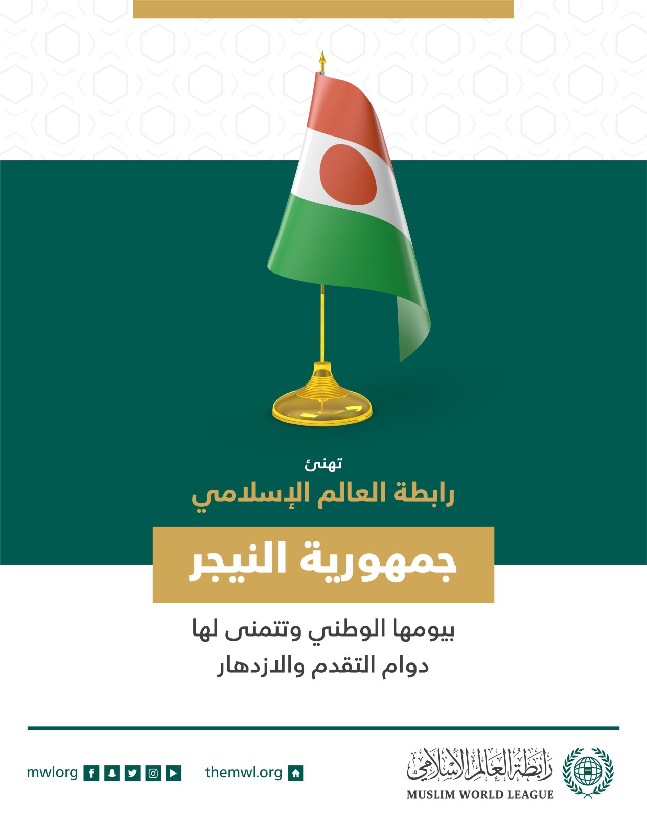 تهنئ رابطة العالم الإسلامي جمهورية النيجر بذكرى يومها الوطني.