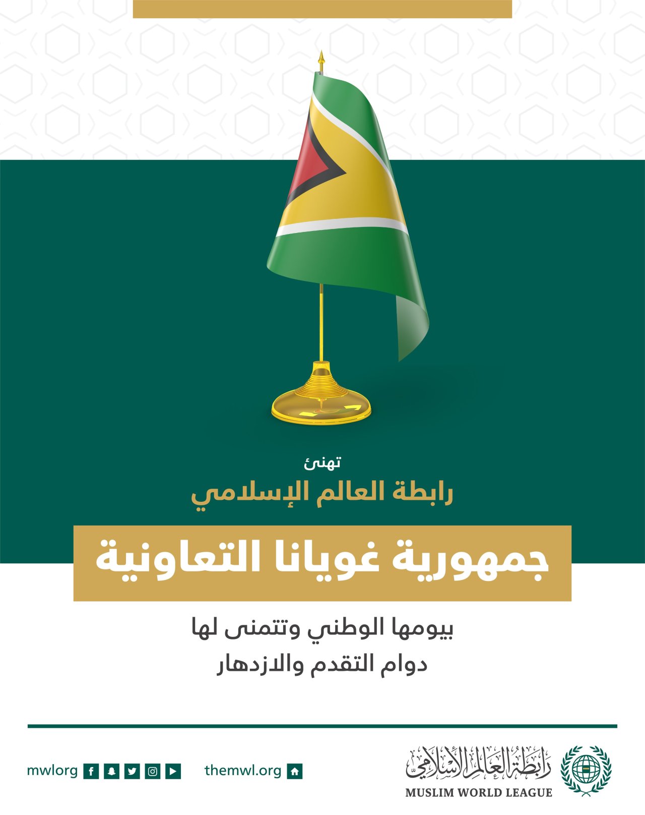 تهنئ رابطة العالم الإسلامي‬⁩ جمهورية غويانا‬⁩ بذكرى يومها الوطني