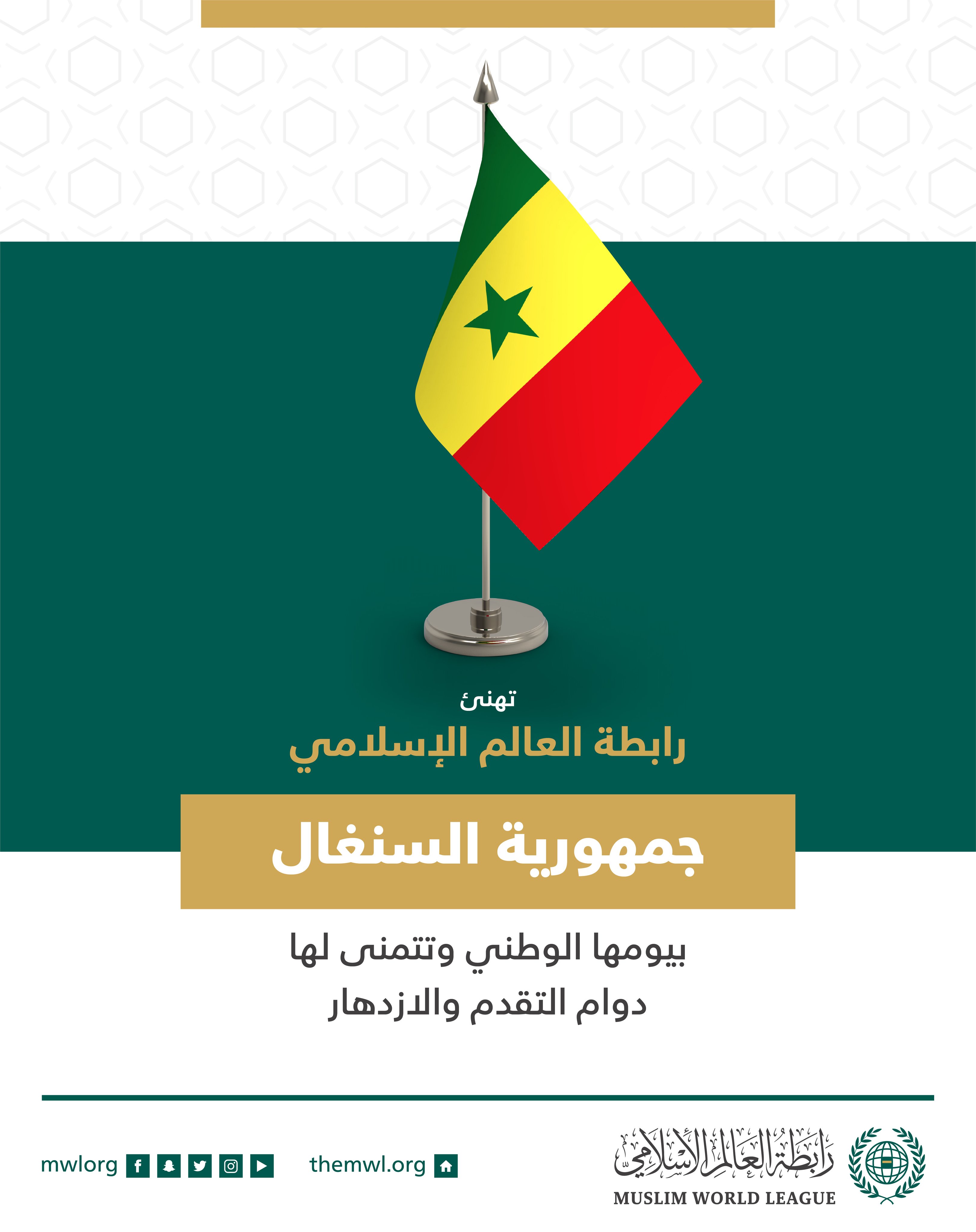تهنئ رابطة العالم الإسلامي جمهورية السنغال بذكرى يومها الوطني.