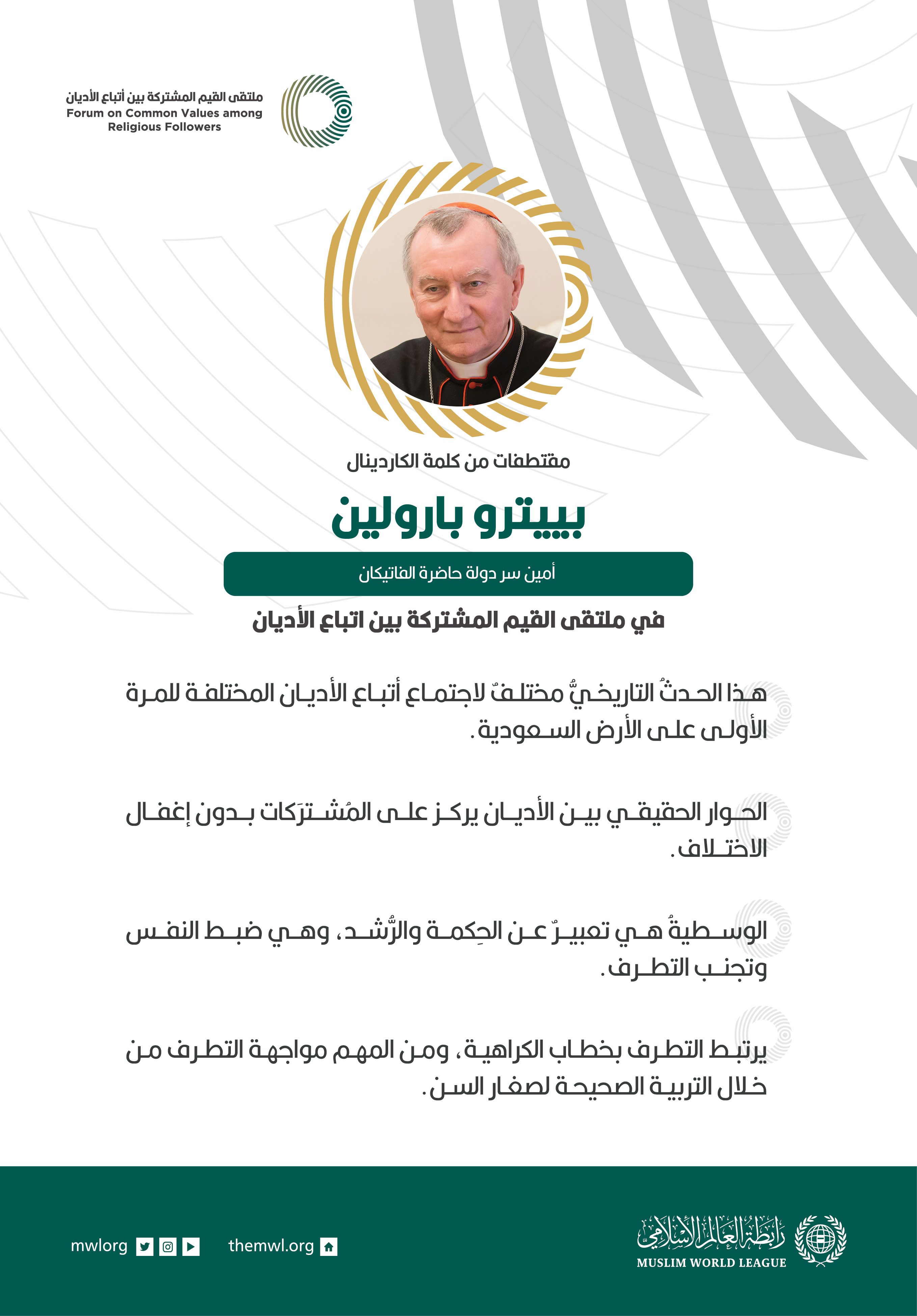 مقتطفاتٌ من كلمة أمين سرّ دولة حاضرة الفاتيكان، الكاردينال بييترو بارولين، خلال ملتقى القيم المشتركة بالرياض: