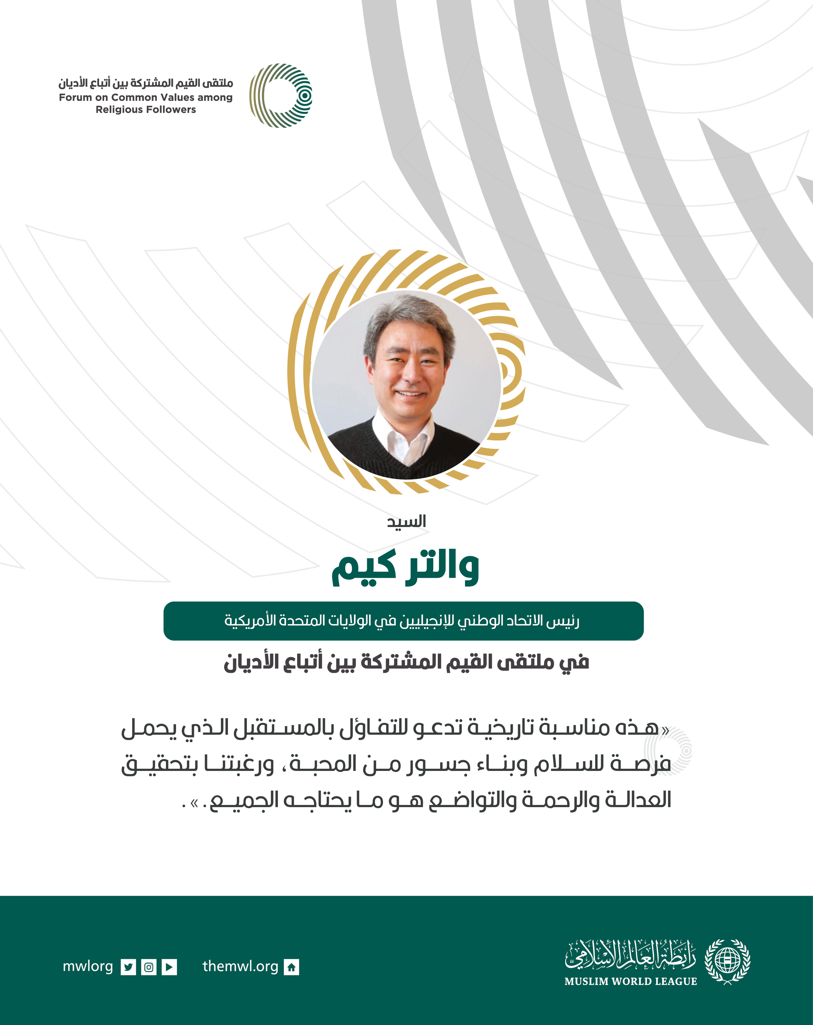 من كلمة رئيس الاتحاد الوطني للإنجيليين في الولايات المتحدة الأمريكية، السيد والتر كيم، خلال ملتقى القيم المشتركة بالرياض: