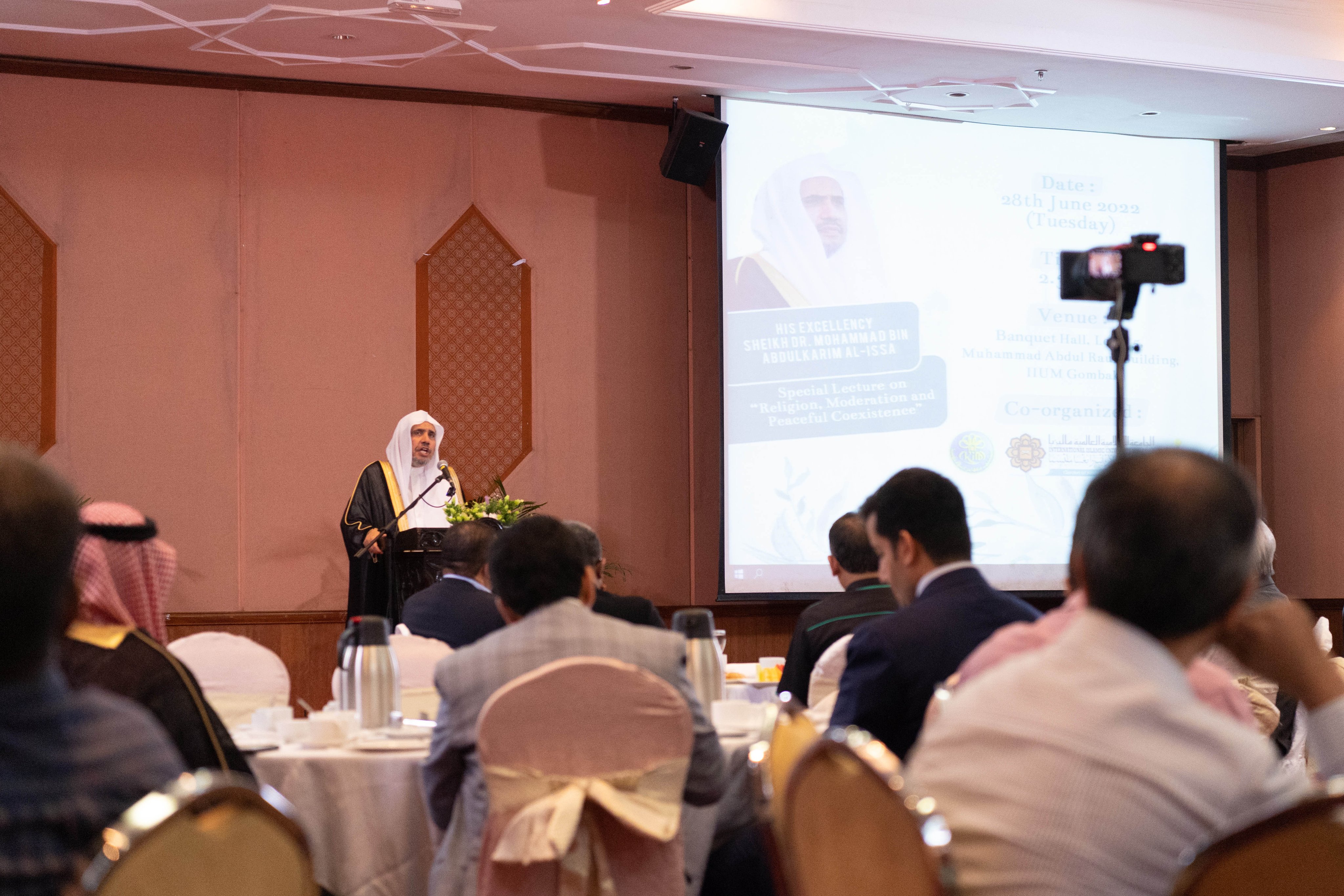 معالي د.محمد العيسى يُحاضر في الجامعة الإسلامية بماليزيا بعنوان “قيم الوسطية والتعايش”، مقدِّمًا في مضامينها الأنموذج الإسلامي الذي جاء محتفياً بالقيم الإنسانية المشتركة، متمثلة بقوله ﷺ:”إنما بعثت لأتمم مكارم الأخلاق”.