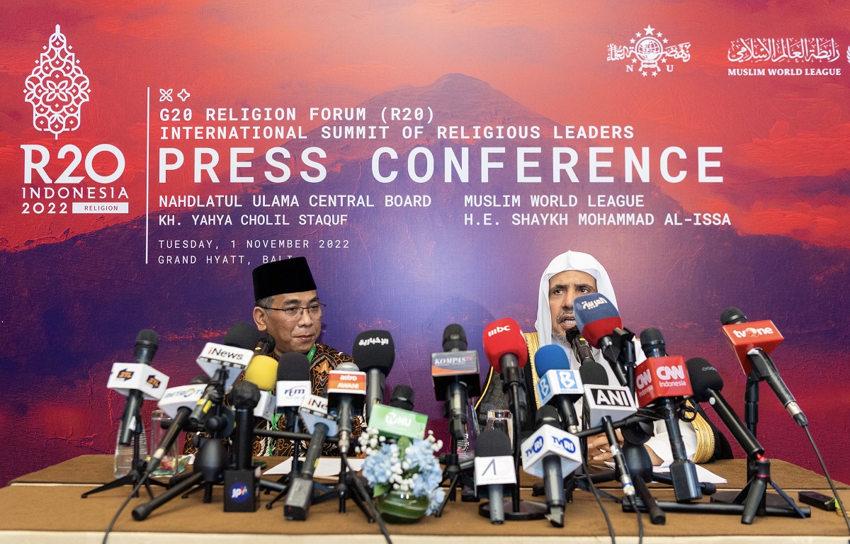 وعقَد مؤسسا ورئيسَا مجموعة تواصل الأديان لمجموعة العشرين "R20"، معالي الدكتور محمد العيسى، ومعالي الشيخ يحيى خليل ثقوف، مؤتمراً صحافياً، تناولا فيه أجندة مجموعة "R20" وجدول أعمال قمّتها الدينية الاستثنائية في مسيرة مجموعة "G20"، وما تطمح إلى تحقيقه من أهداف، بحضور واسع لأهم وسائل الإعلام العالمية، من وكالات الأنباء والقنوات الفضائية والصحف.