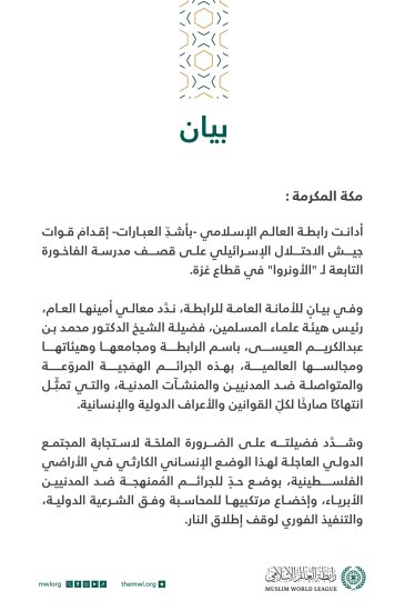 بيان من رابطة العالم الإسلامي‬⁩ :