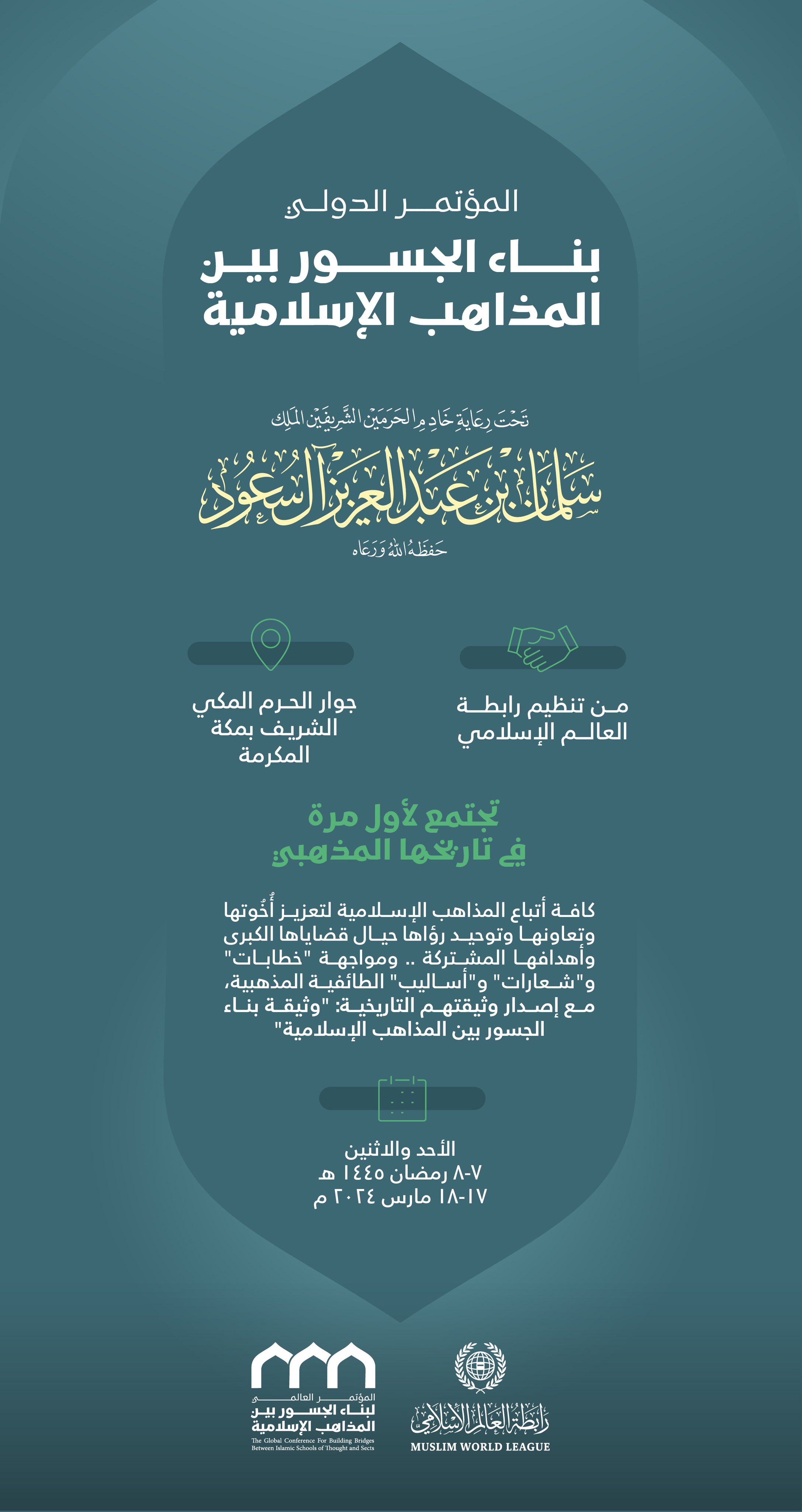 تحتضِنُ مكة المكرمة غدًا "بمشيئة الله تعالى" المؤتمر الدوليّ: "بناء الجسور بين المذاهب الإسلامية"، تنظيم رابطة العالم الإسلامي.