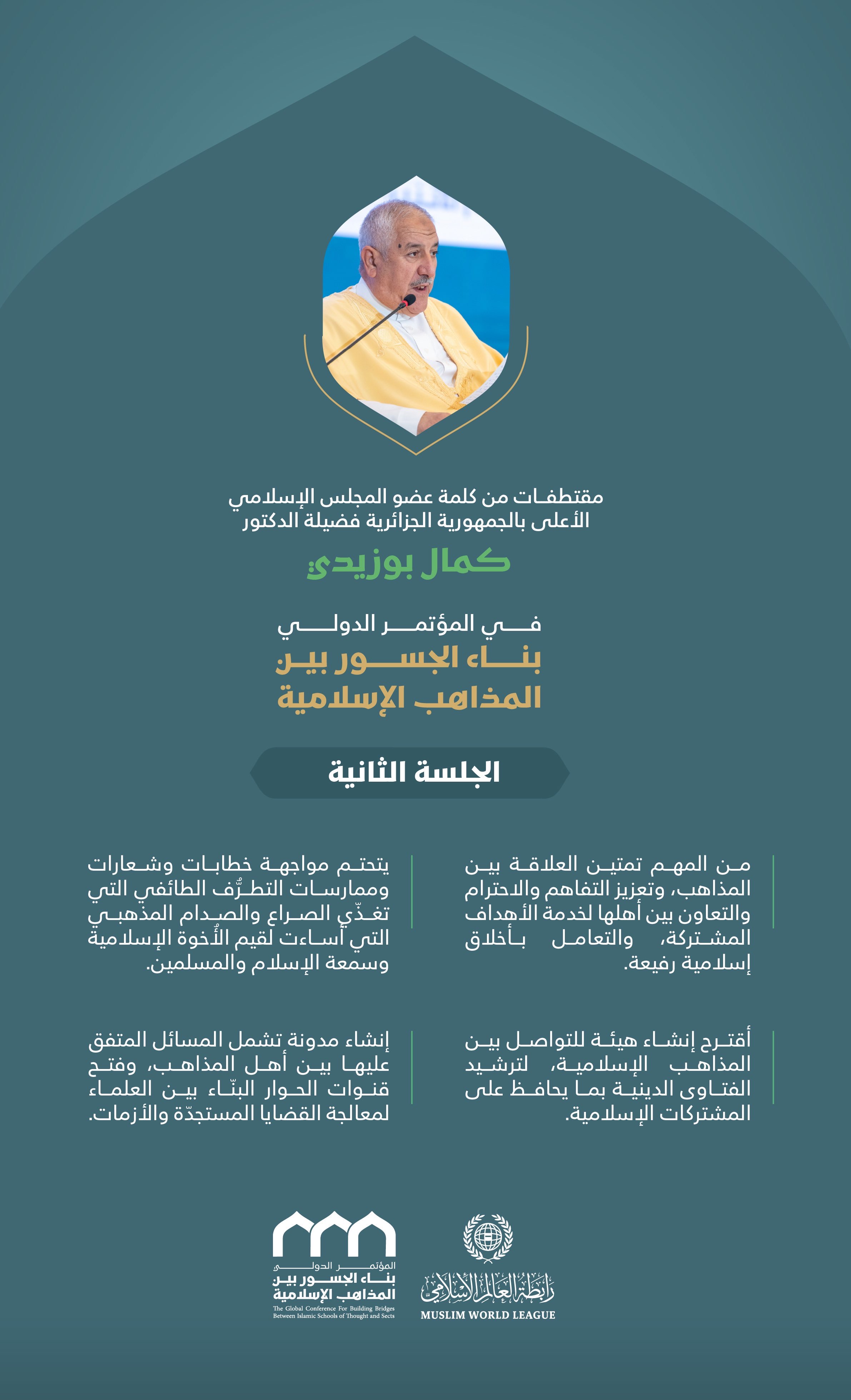 مقتطفات من كلمة فضيلة عضو المجلس الإسلامي الأعلى بجمهورية الجزائر، الدكتور كمال بوزيدي، خلال المؤتمر الدولي: "بناء الجسور بين المذاهب الإسلامية":